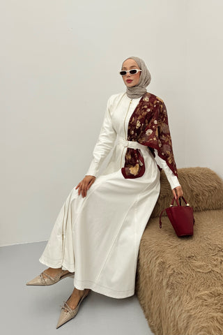Boydan Fermuarlı Denim Elbise Ekru