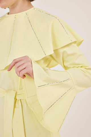 İnce Tensel Volan Detaylı Boydan Düğmeli Elbise Sarı
