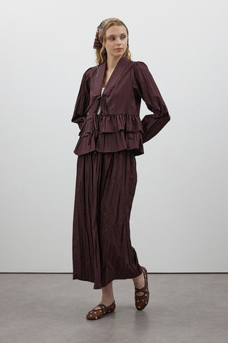 Mürdüm Kırışık Fırfırlı İkili Takım