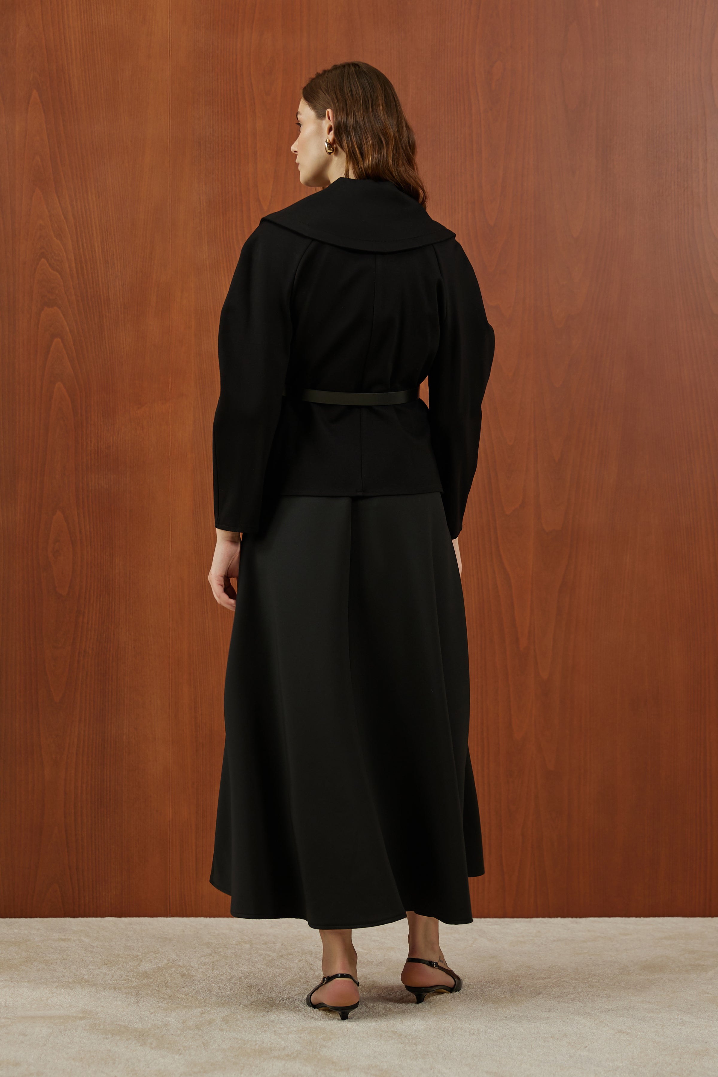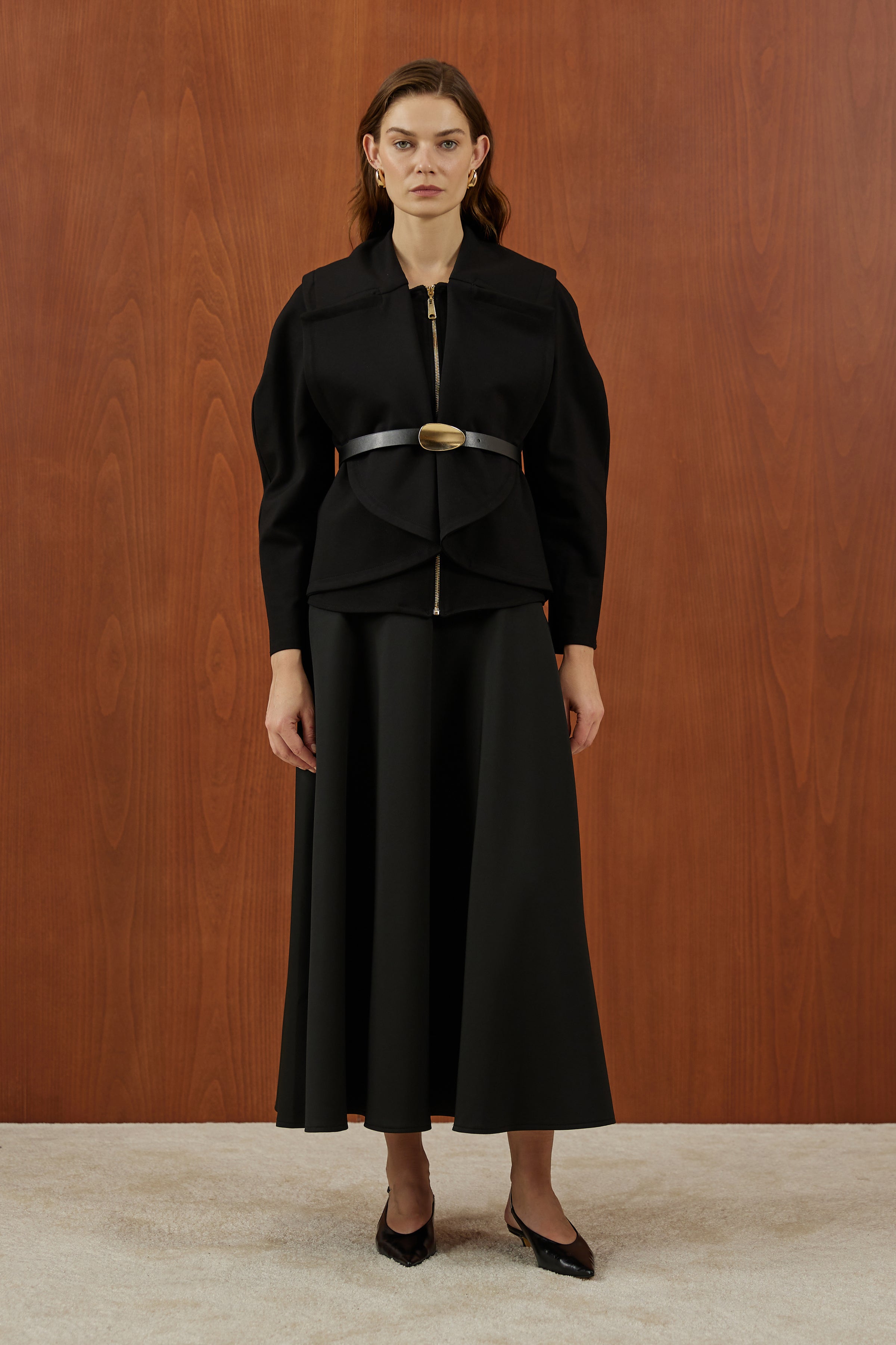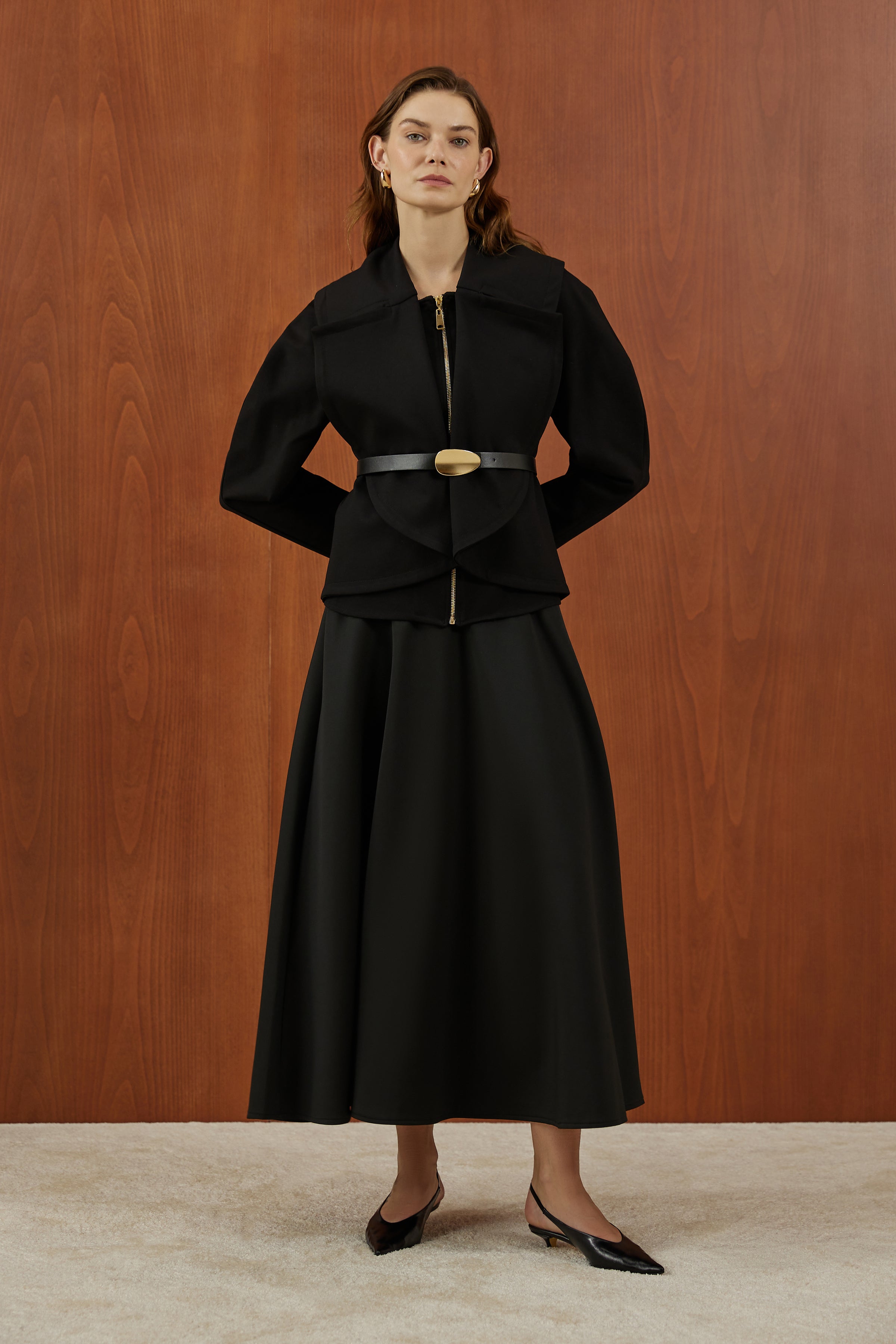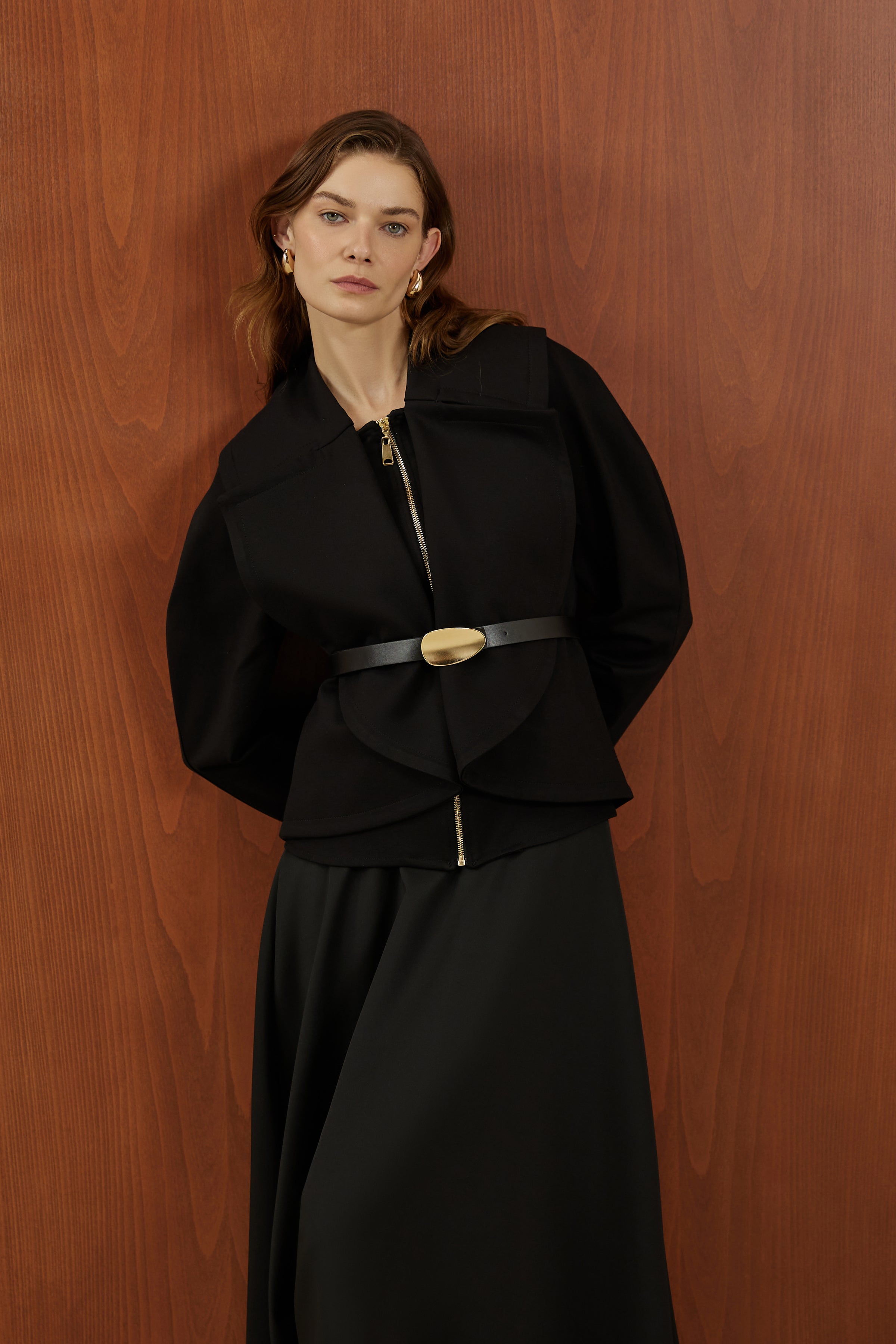 Siyah Fermuarlı Kemer Detaylı Santana Ceket