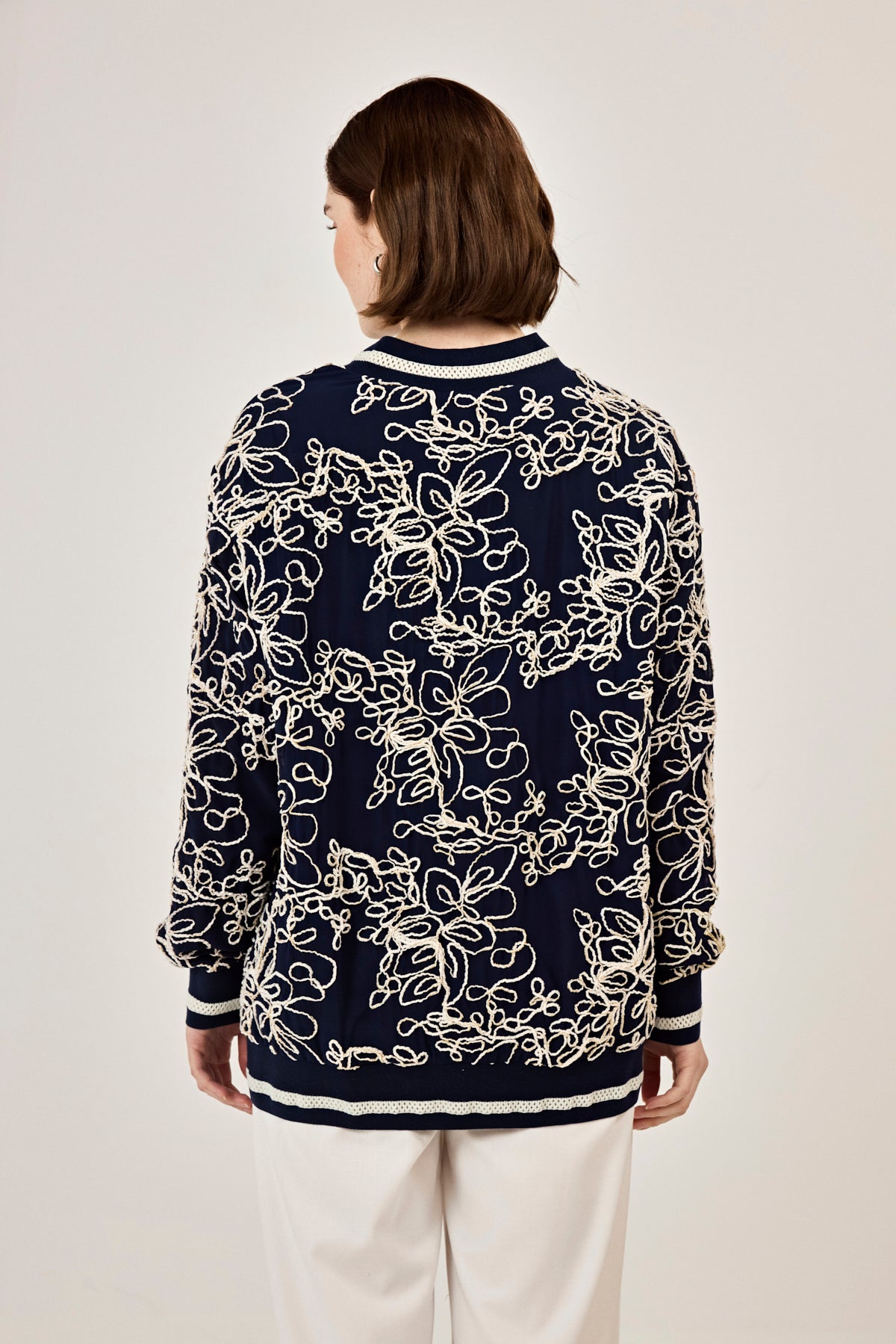 Nakışlı şifon Fermuar Detaylı Ceket Lacivert
