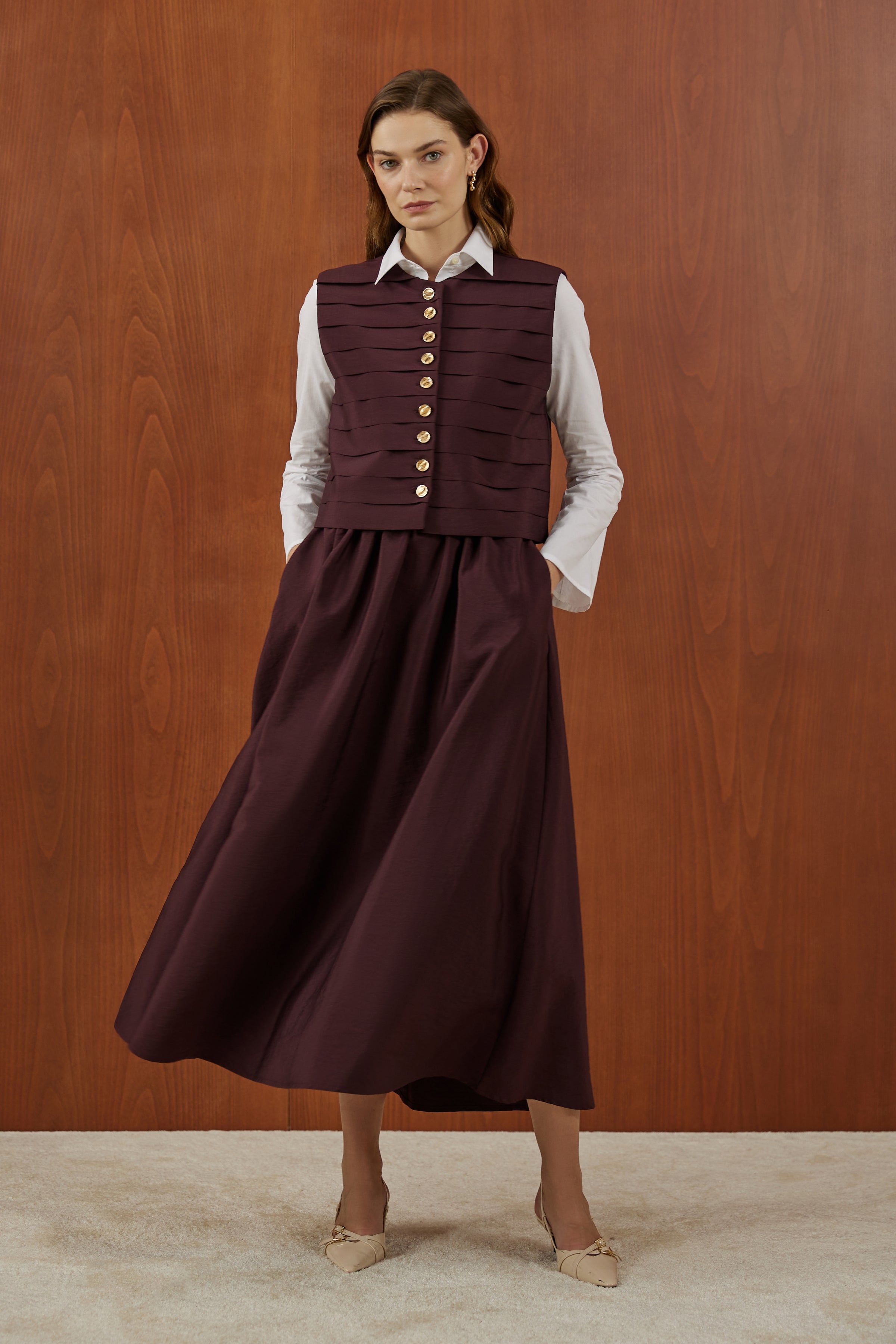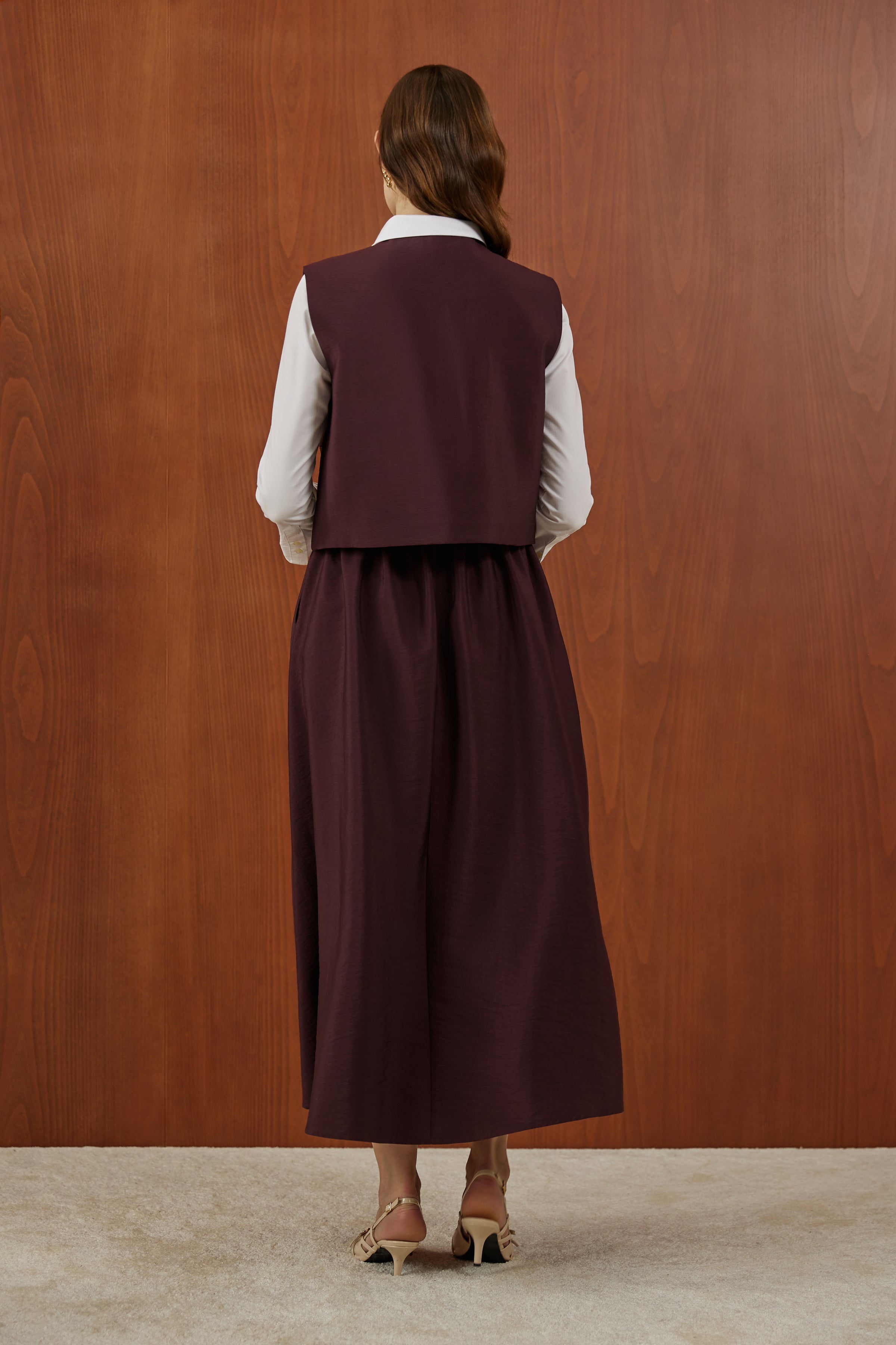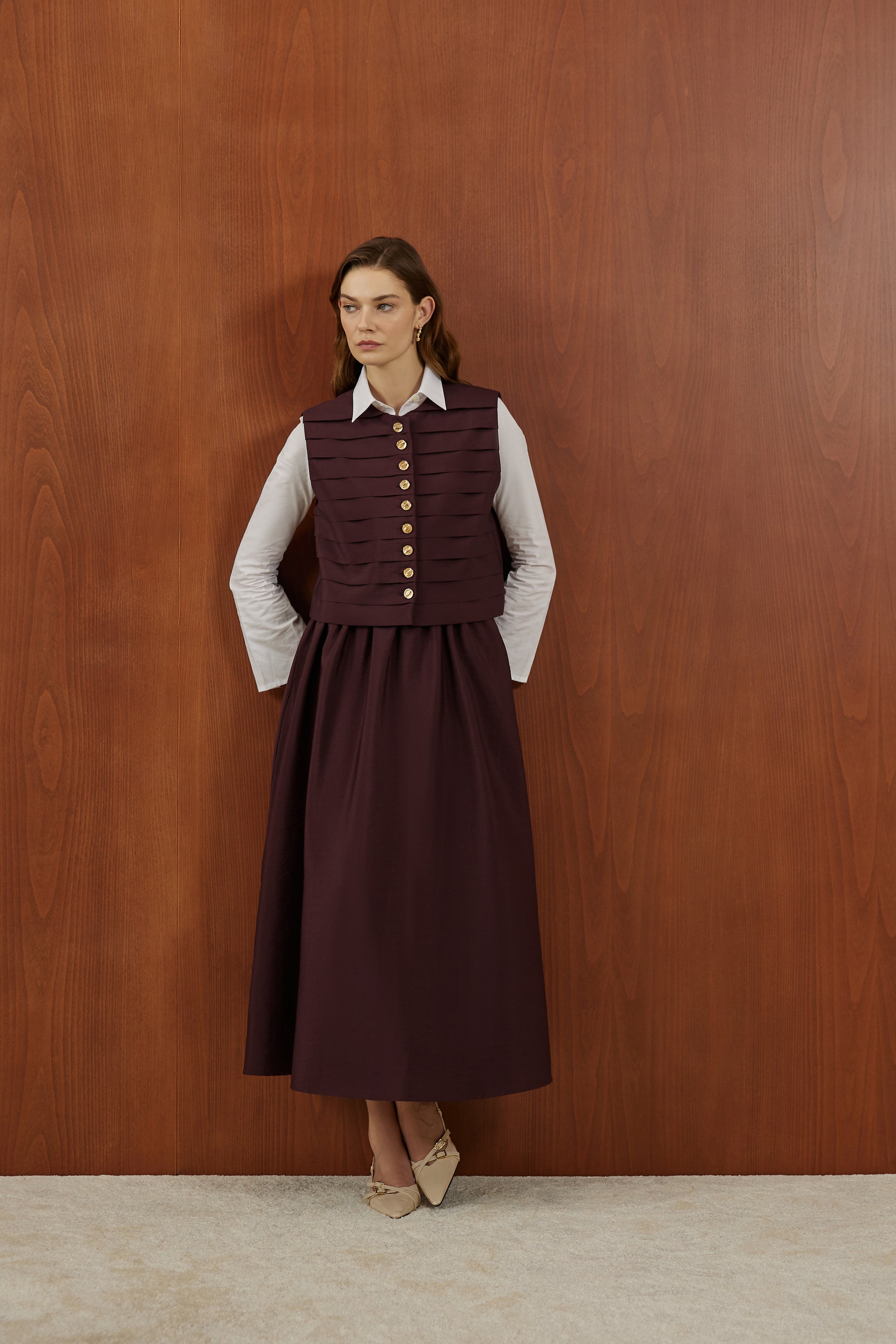 Göğüs Kısmı Pile Detaylı Elbise - Bordo