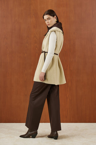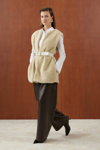 Kıvırcık Kuşaklı Peluş Yelek - Beyaz