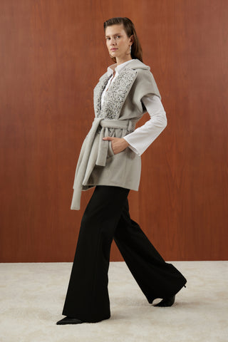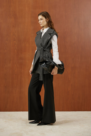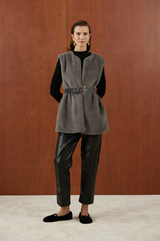 Deri Kuşaklı Peluş Yelek - Antrasit