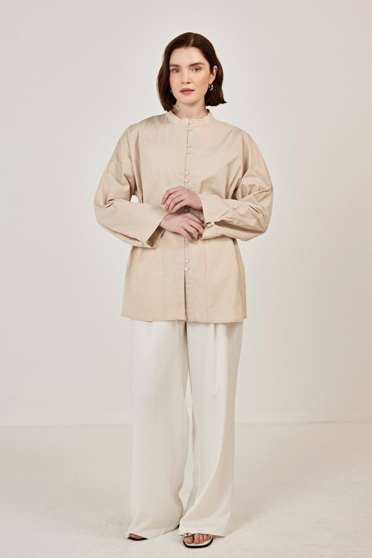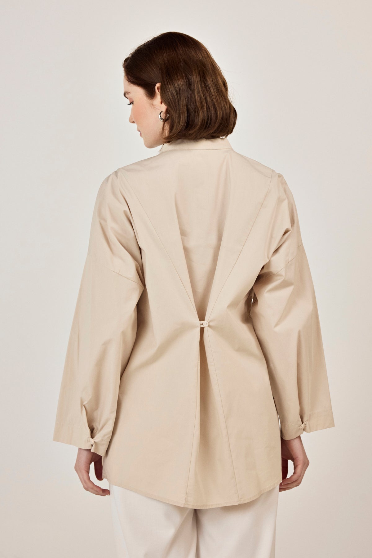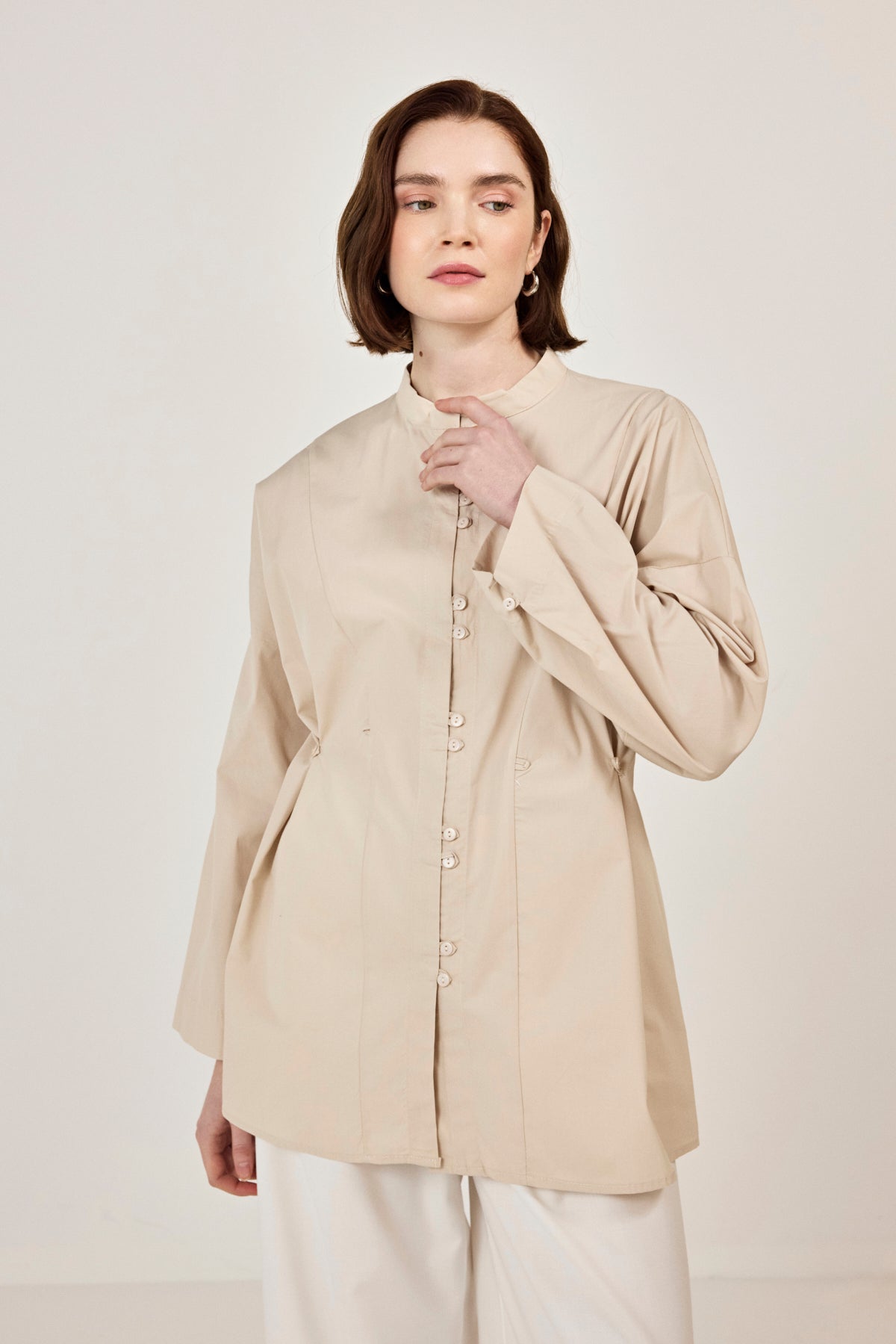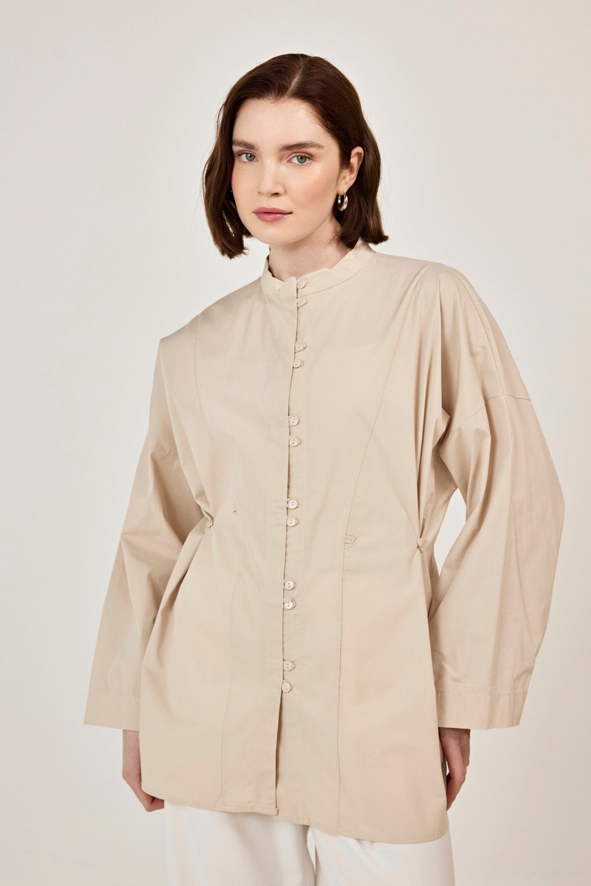 Birit Detaylı Poplin Gömlek Bej