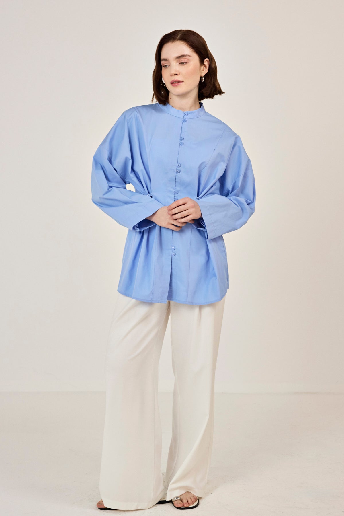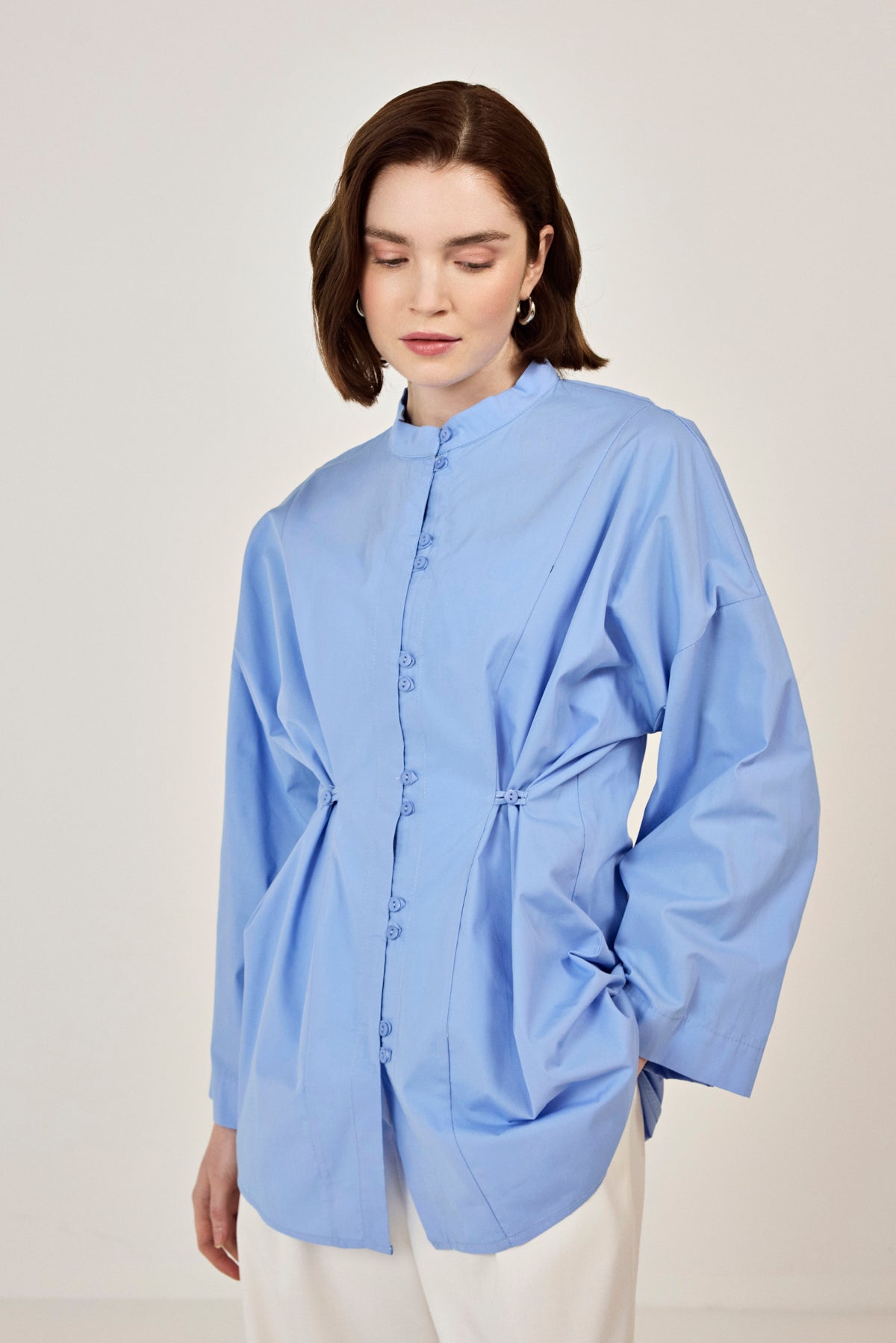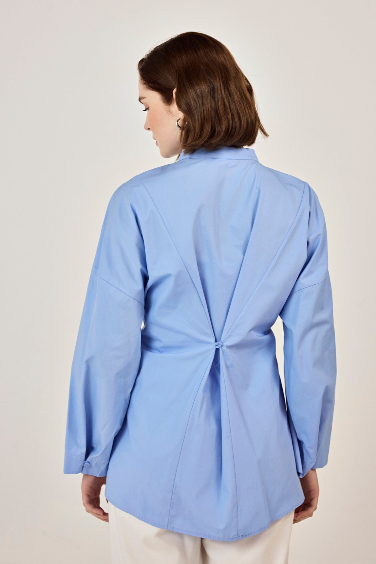 Birit Detaylı Poplin Gömlek Mavi