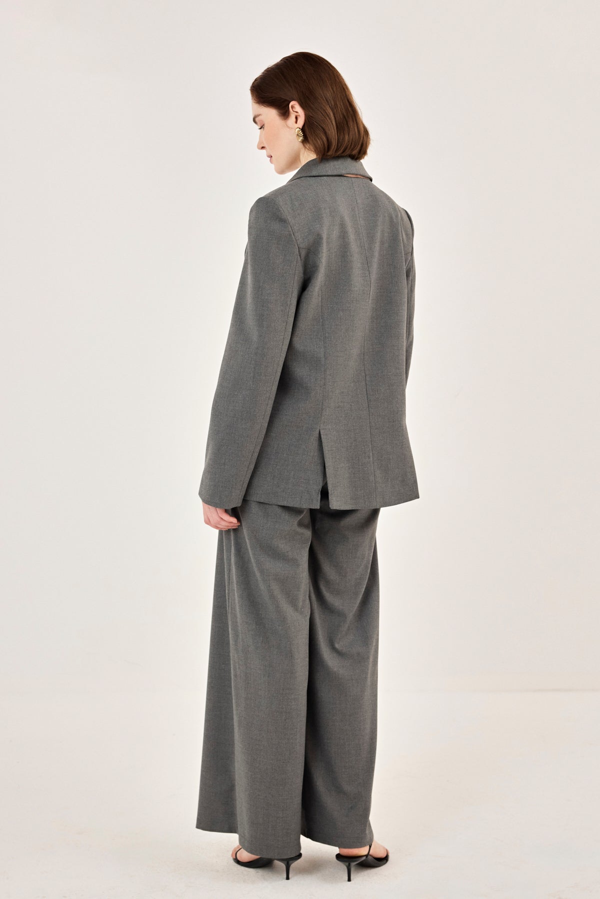 Zamansız kesimi ve şık duruşuyla iş hayatından özel davetlere kadar geniş bir kullanım alanı sunan bu takım, tek parça şıklık arayan kadınlar için ideal bir tercihtir. Topuklu ayakkabı ve zarif aksesuarlarla kombinlendiğinde modern ve etkileyici bir görünüm elde edilir.
