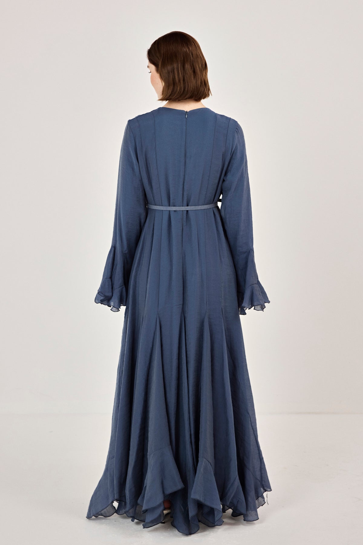 Fırfır Ve Volan Detaylı Şifon Elbise
