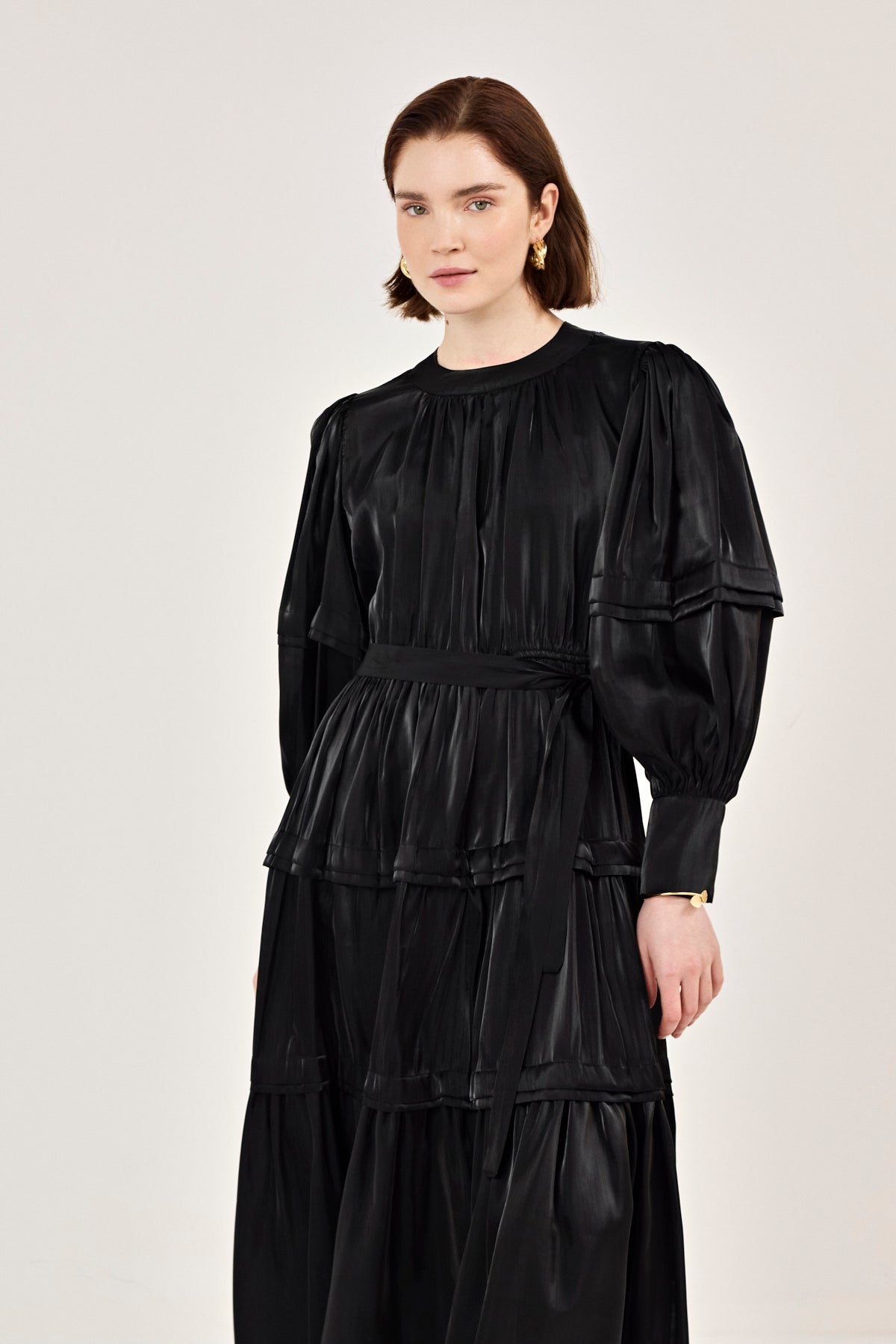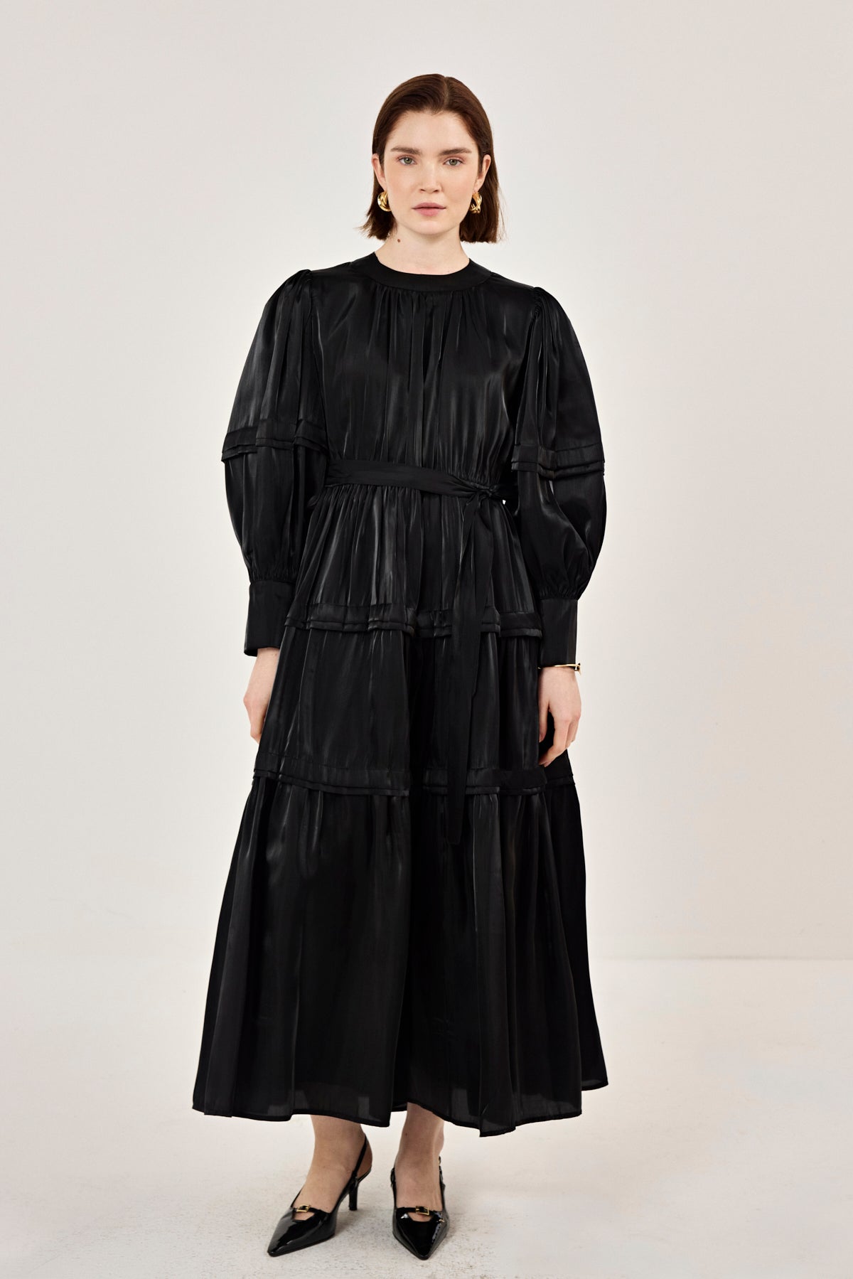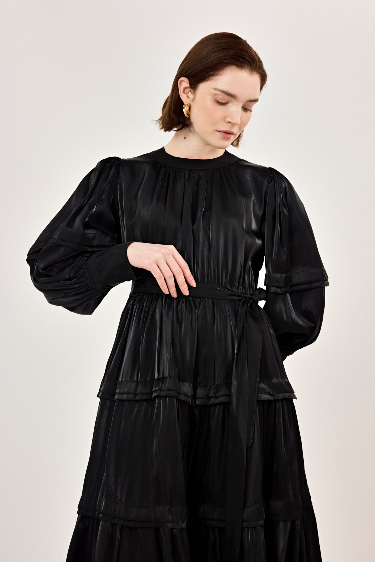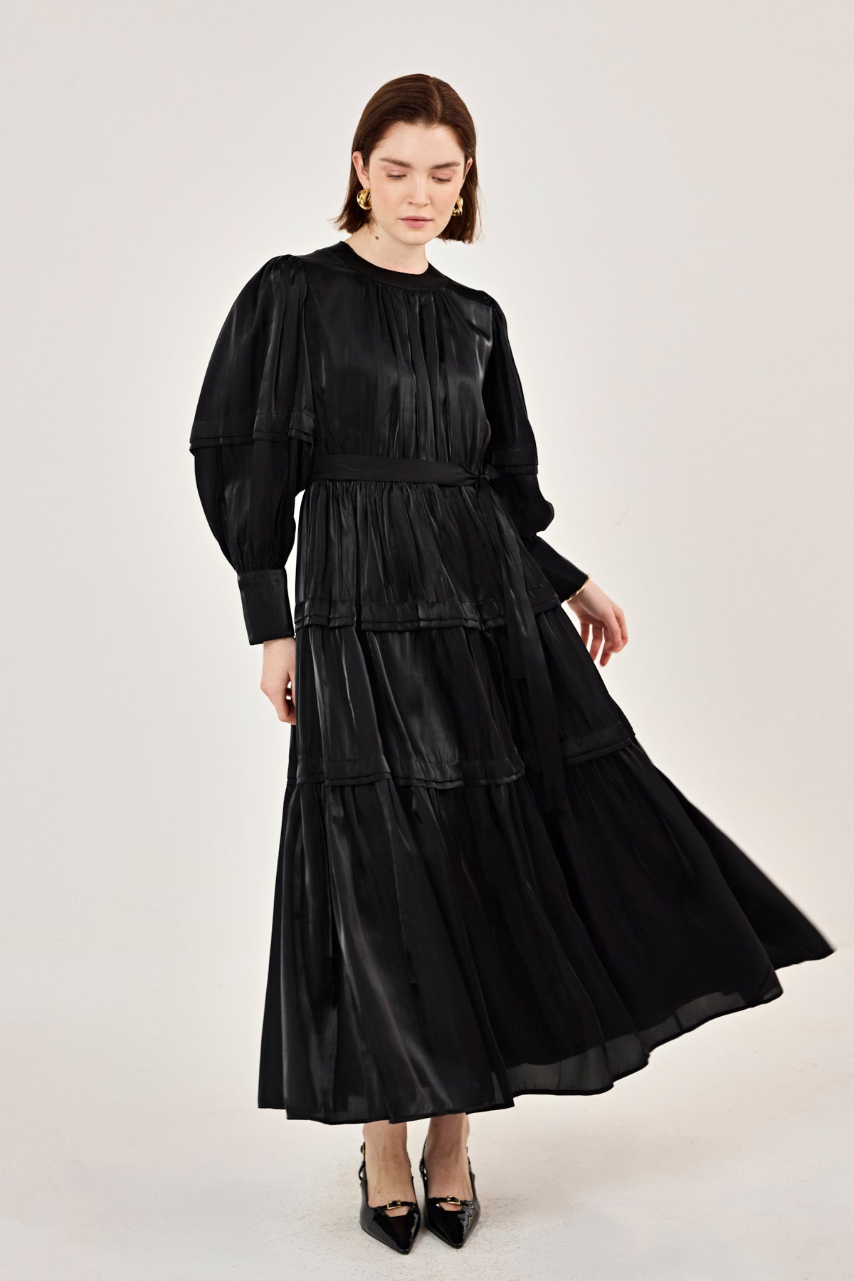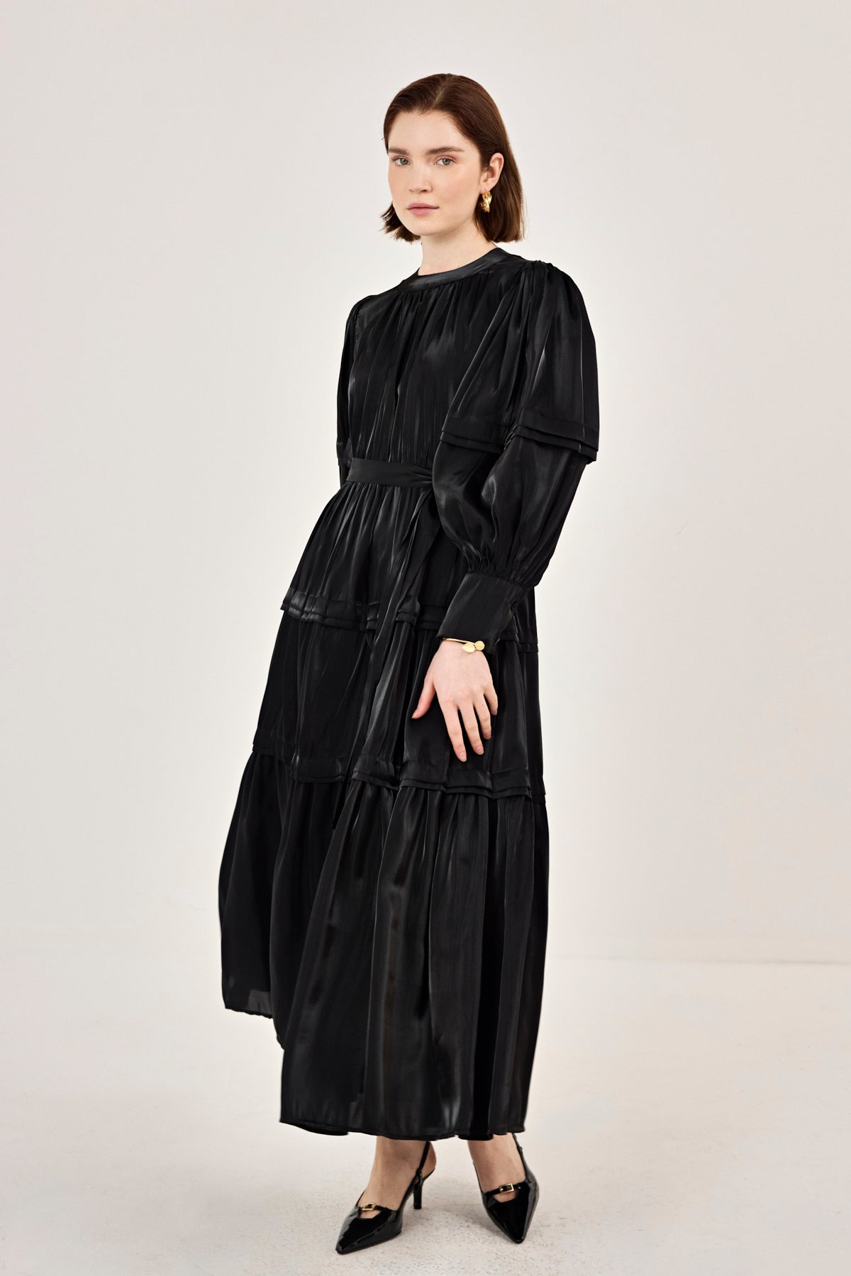 Fırfır Ve Volan Detaylı Şifon Elbise