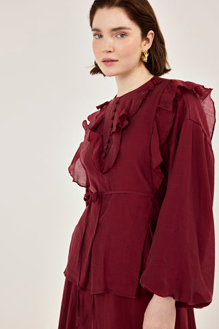 Büzgü Detaylı Balon Etekli Poplin Elbise