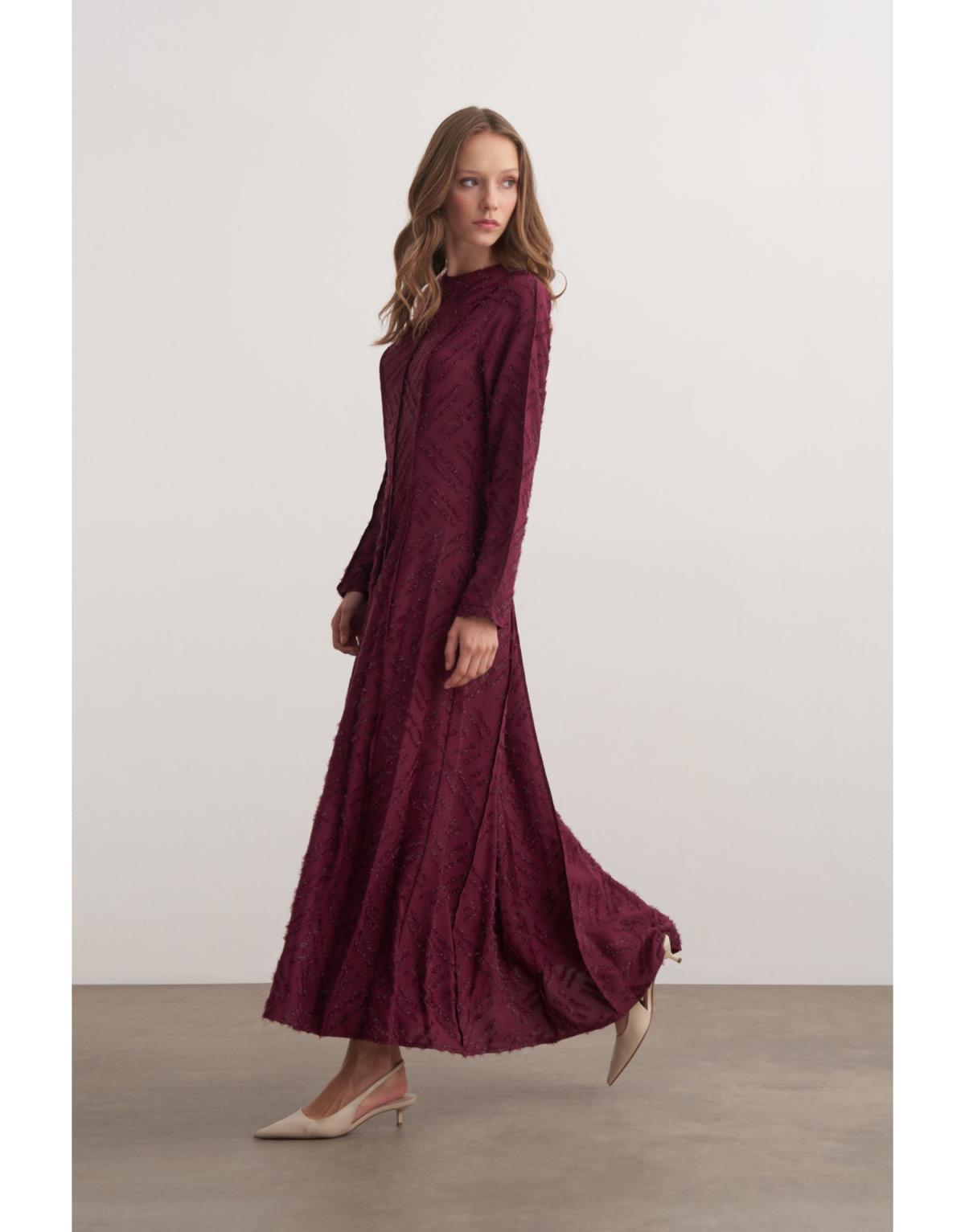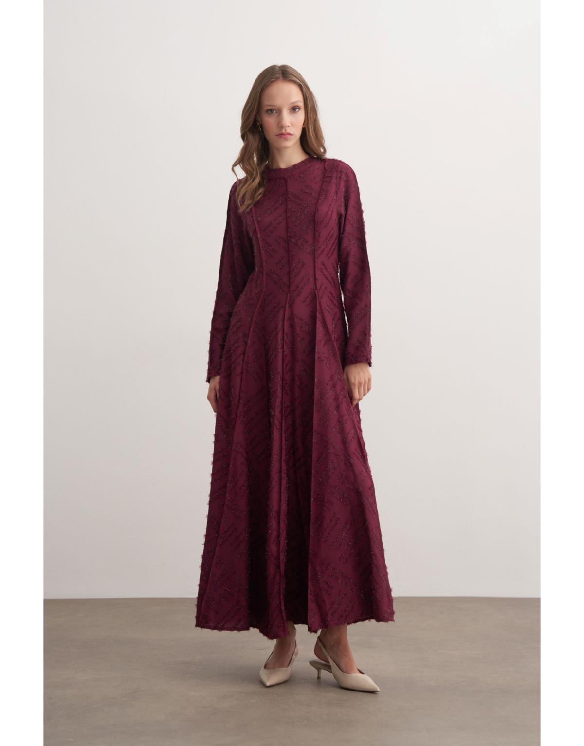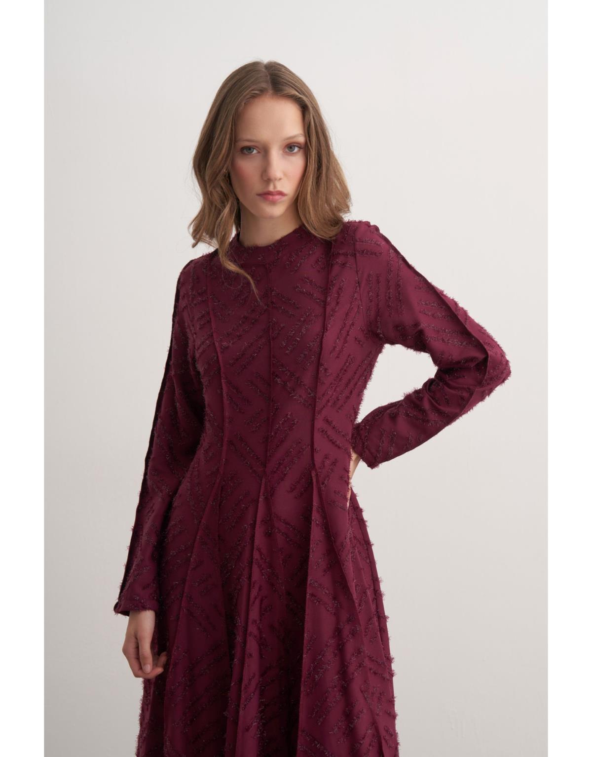 Göğüs Kısmı Pile Detaylı Elbise - Bordo