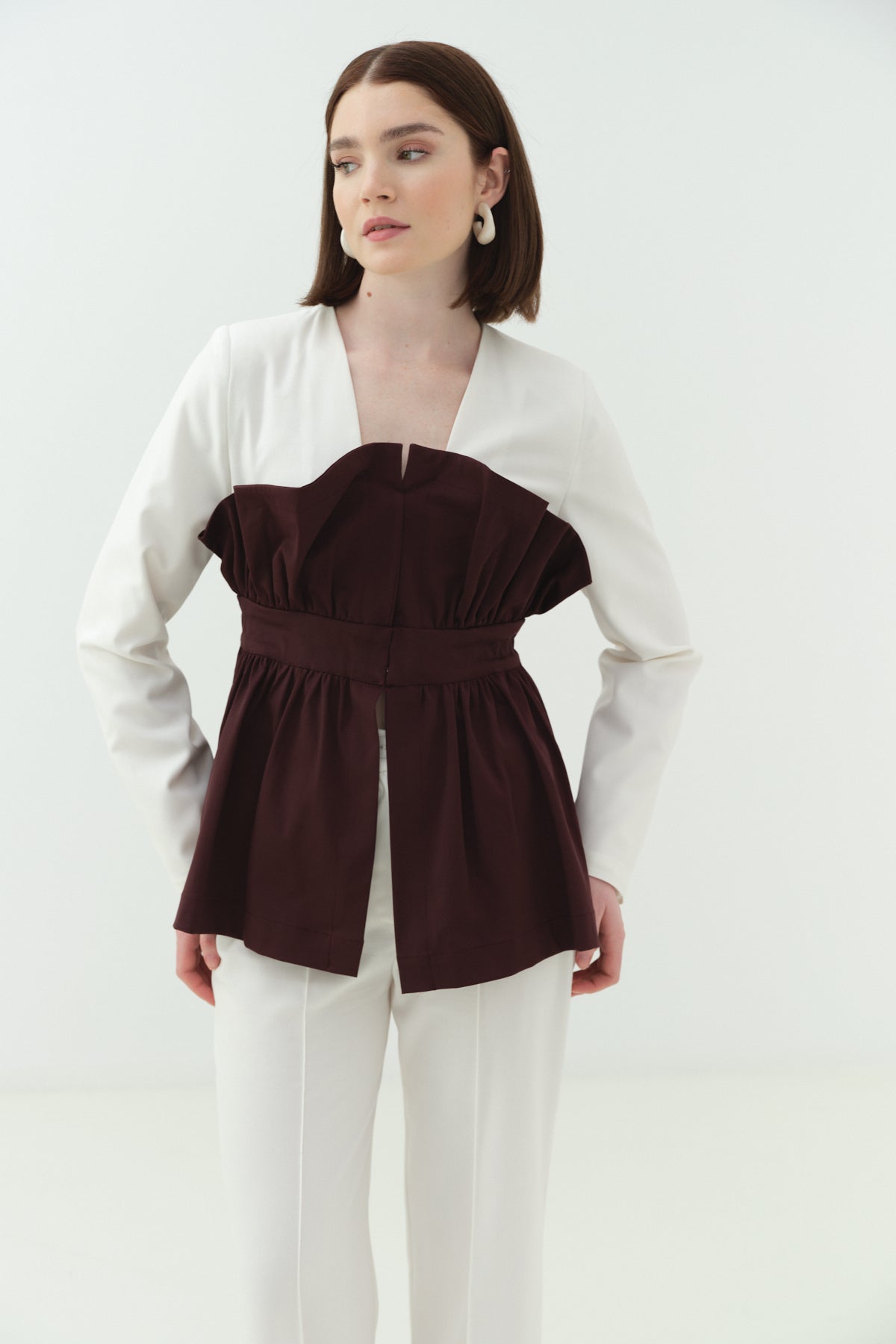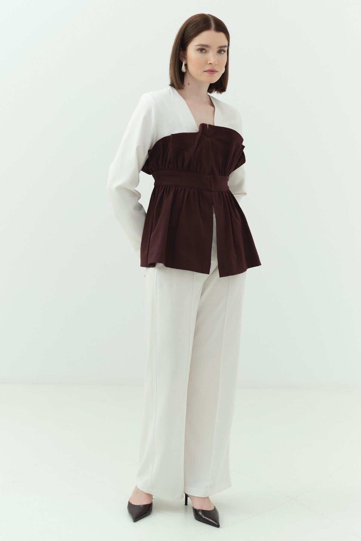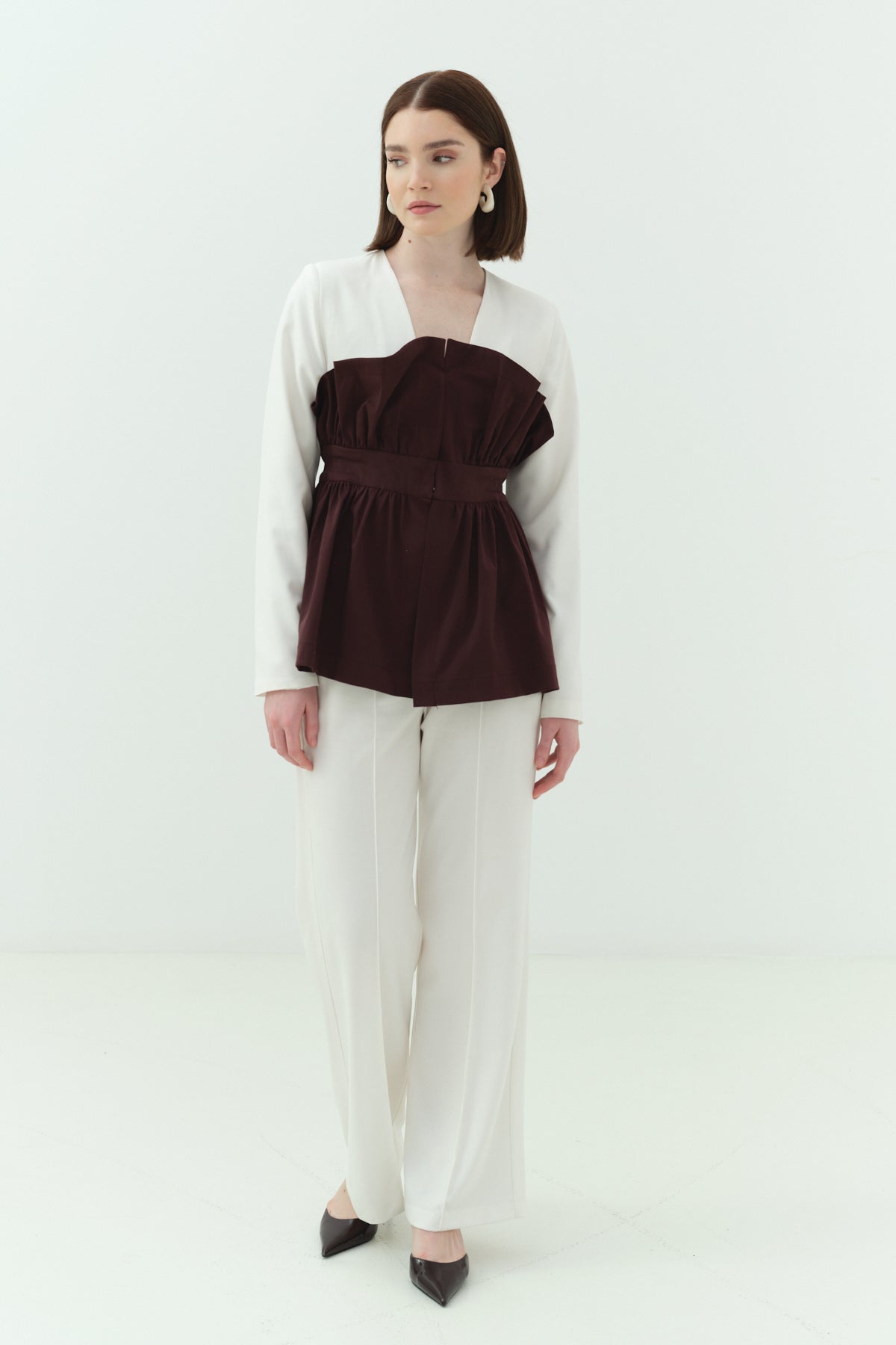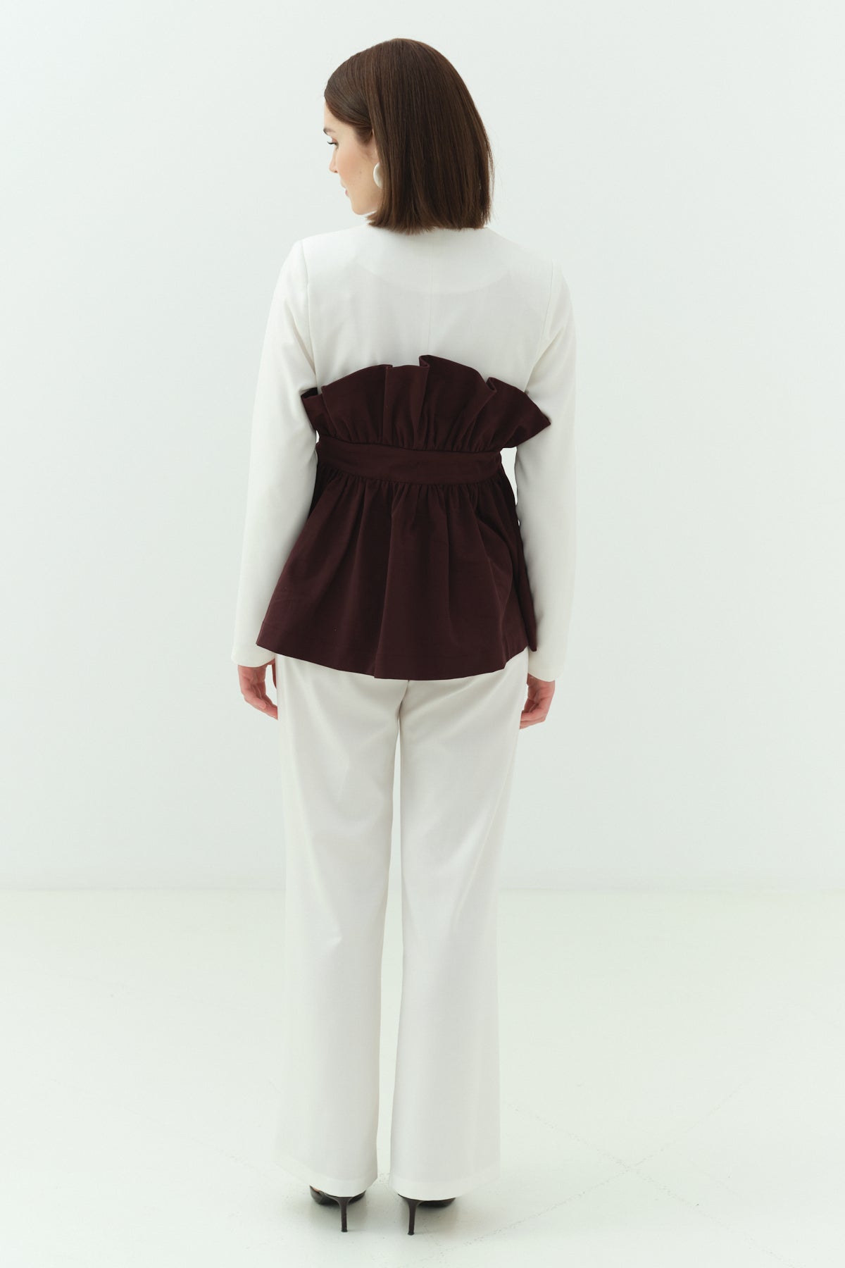 Büzgü Korsaj Detaylı Ceket Pantolon Takım Bordo