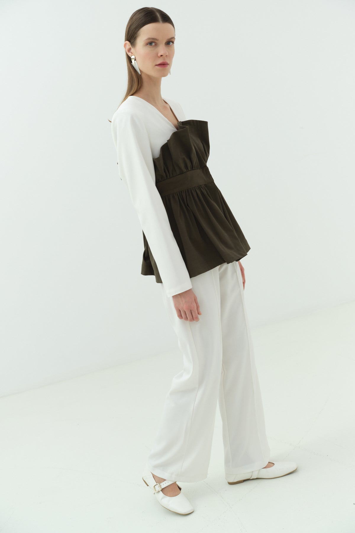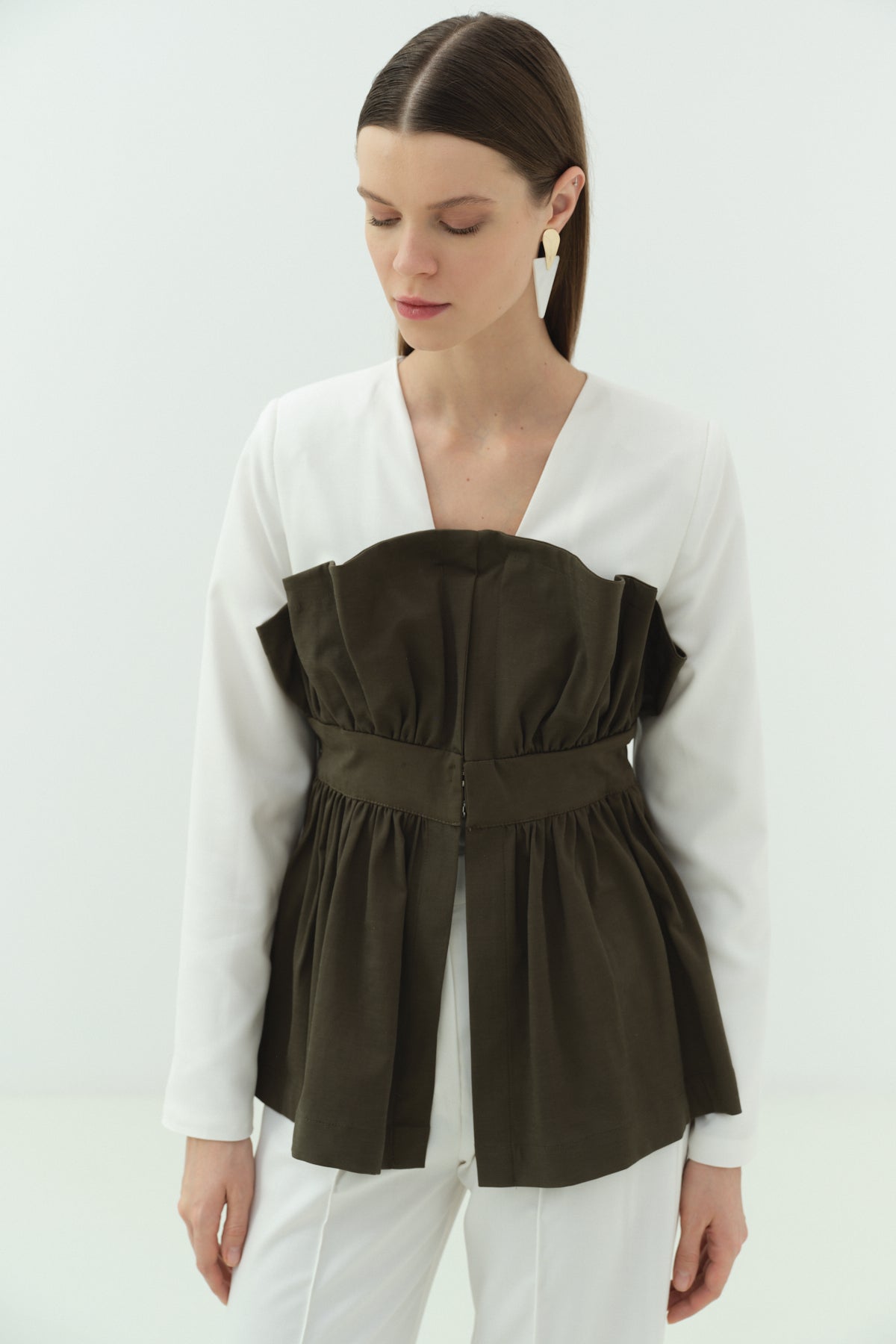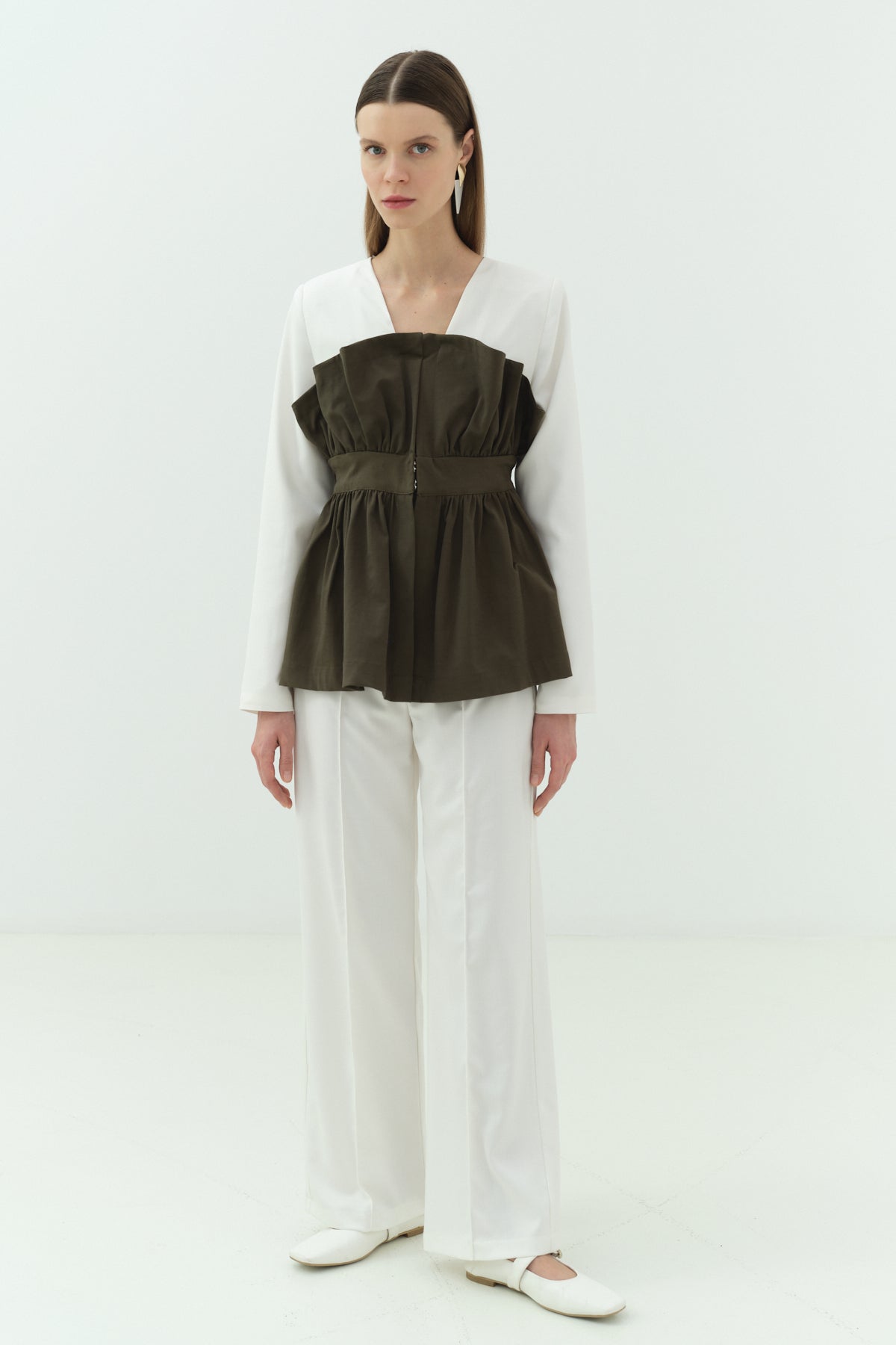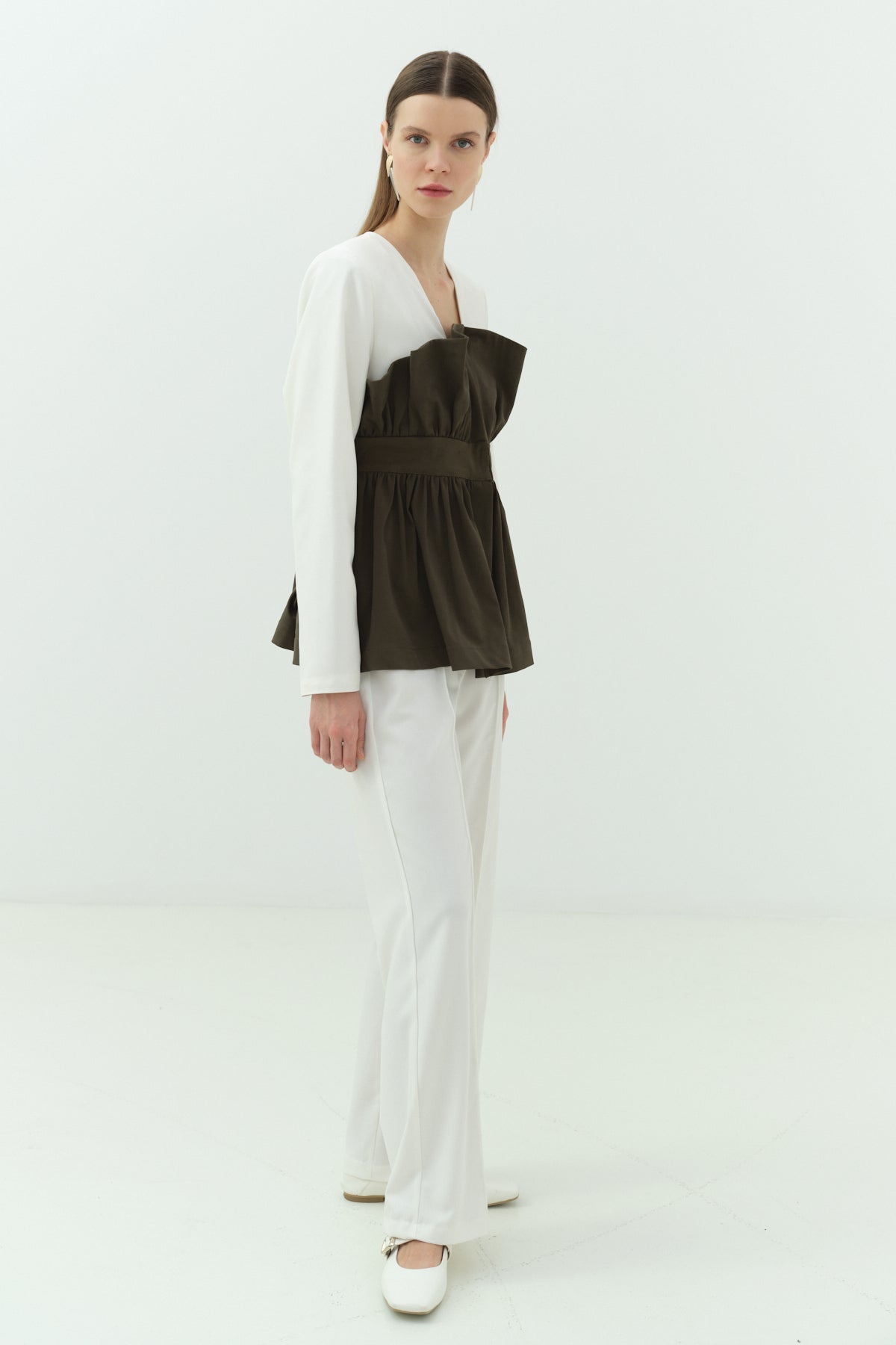 Büzgü Karsoj Detaylı Ceket Pantolon Takımı, modern çizgileri ve özgün tasarımıyla stil sahibi kombinler oluşturmak isteyenler için özel olarak tasarlanmıştır. Üzerindeki buzgü ve karsoj detayları değişirken hareket ve farklılık sağlarken, bel kısmı oluşturulmuş form ile vücut proporsiyonunu dengeler.