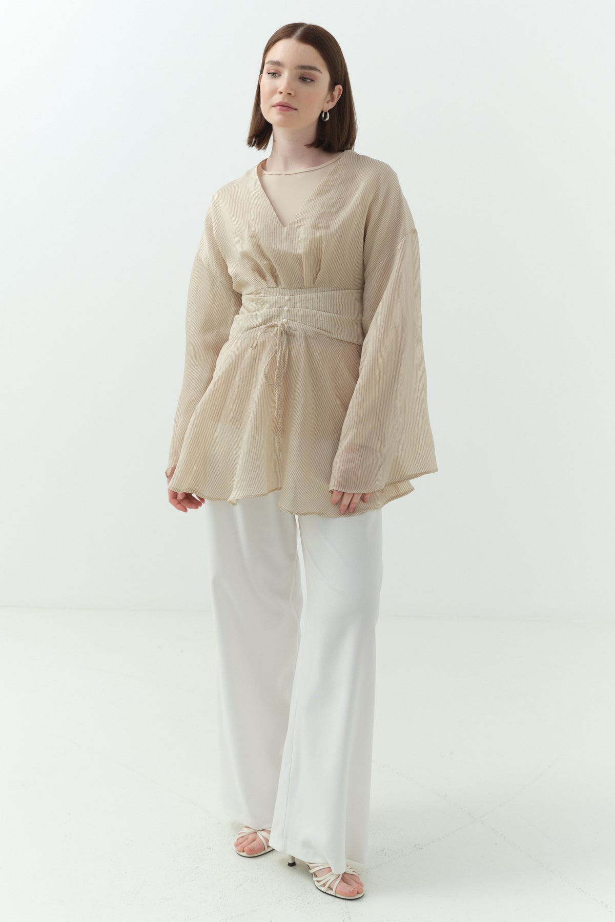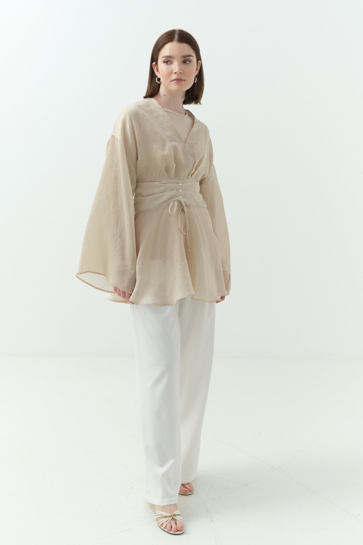 Şal Detaylı Blazer İkili Takım - Bej