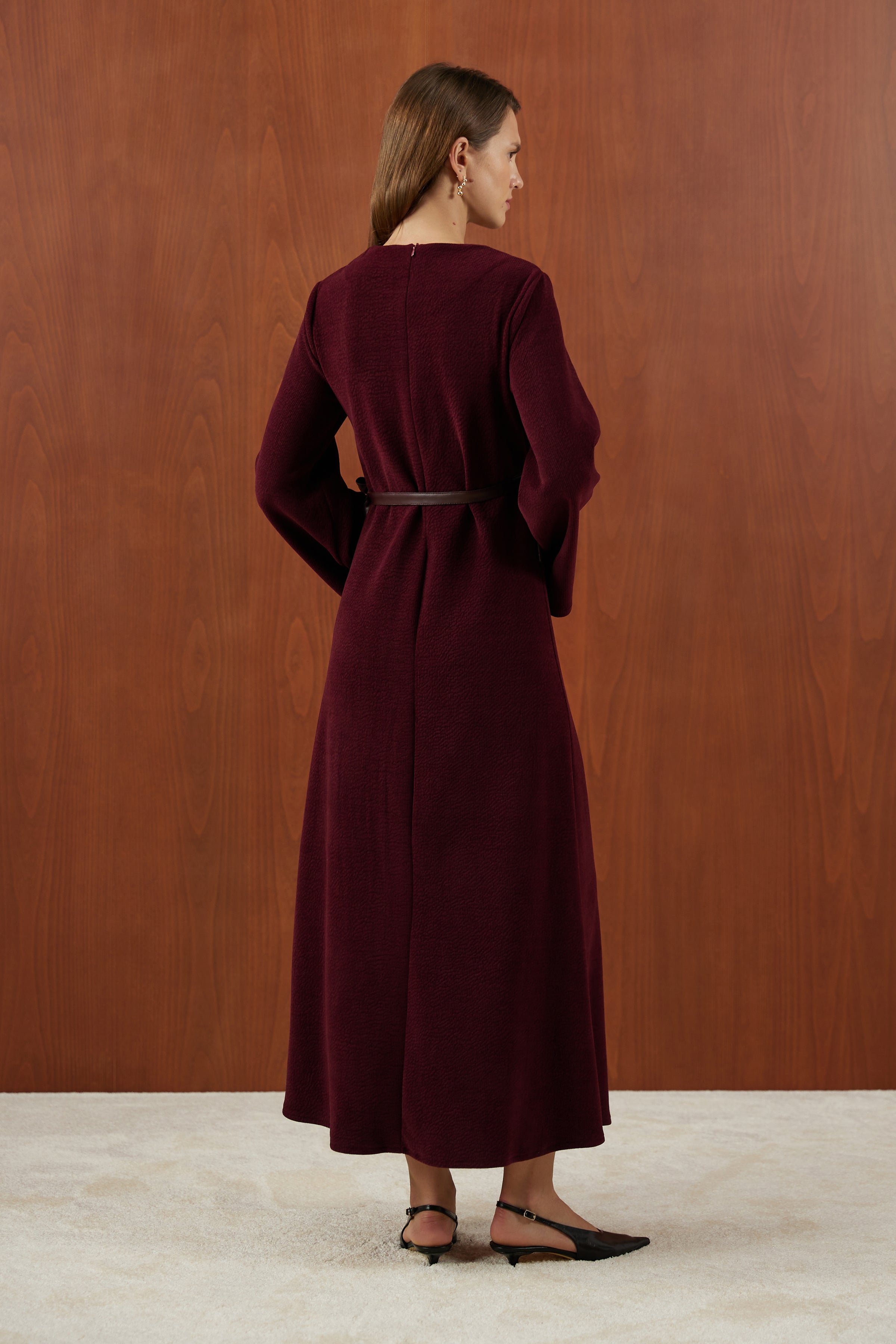 Göğüs Kısmı Pile Detaylı Elbise - Bordo