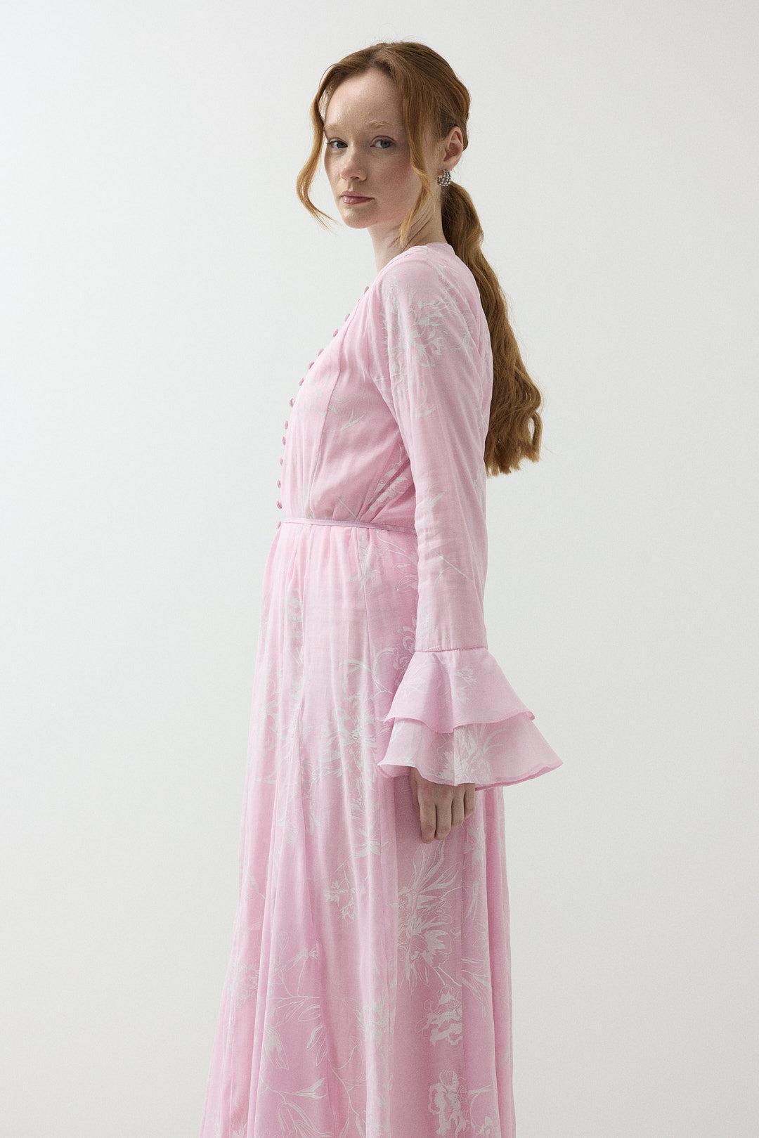 Kolları Gül Detaylı Poplin Elbise - Pembe