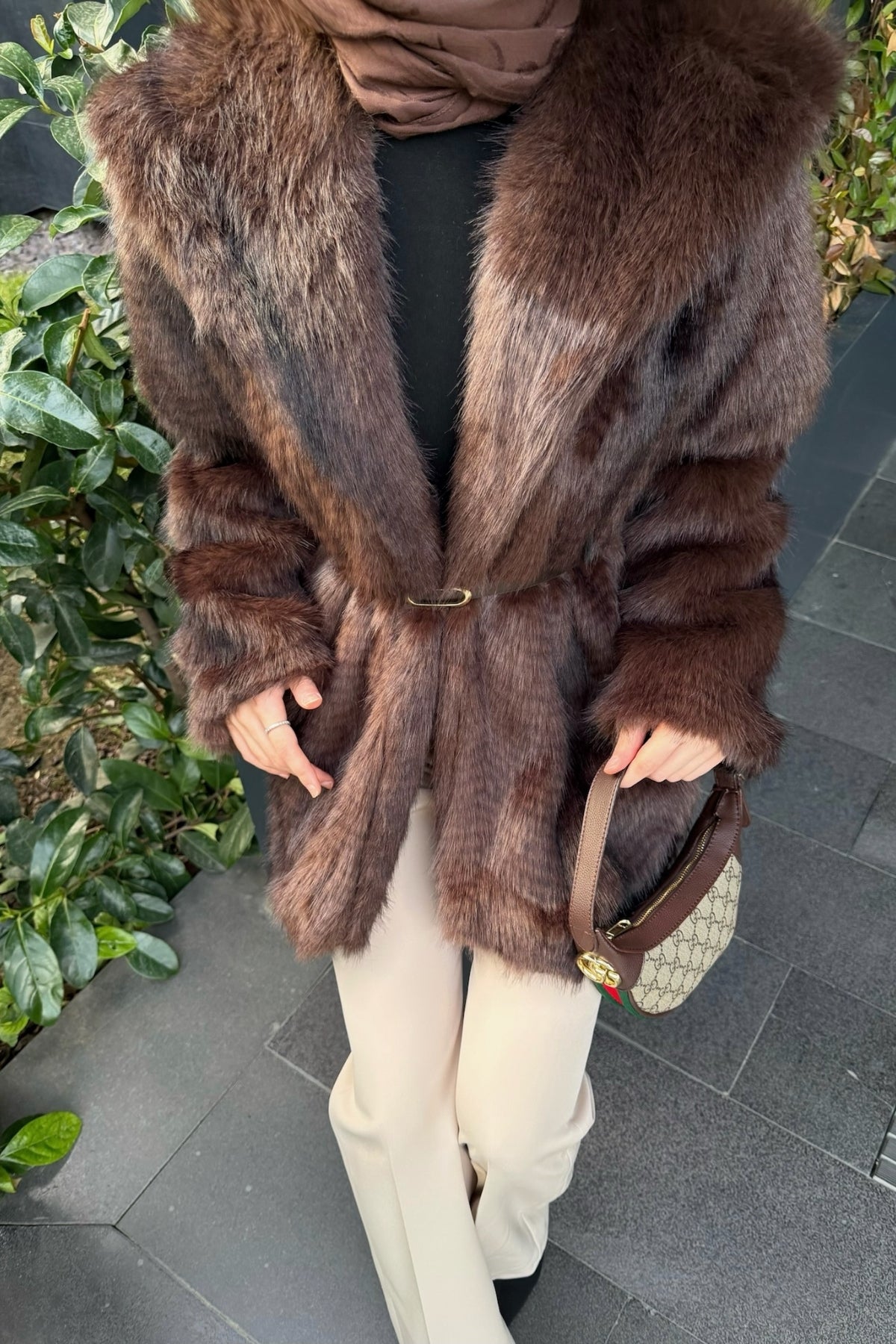 Soğuk günlerde sizi hem sıcak tutacak hem de şıklığınızdan ödün vermemenizi sağlayacak astarlı kürk mont, yumuşak dokusu ve rahat kalıbıyla keyifli bir kullanım sunar. İç astarı sayesinde gün boyu konfor sağlarken, zarif duruşu ile kombinlerinize modern bir dokunuş katar.