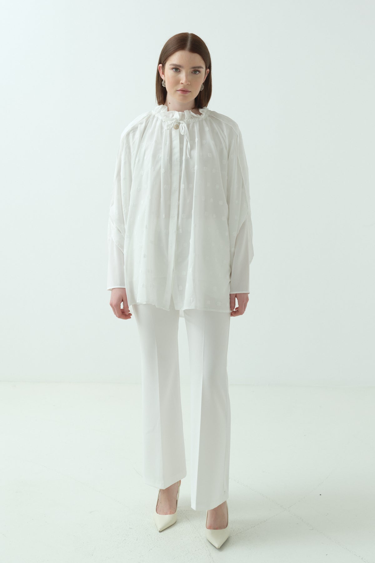 İçlikli Kesme Şifon Gömlek Ekru