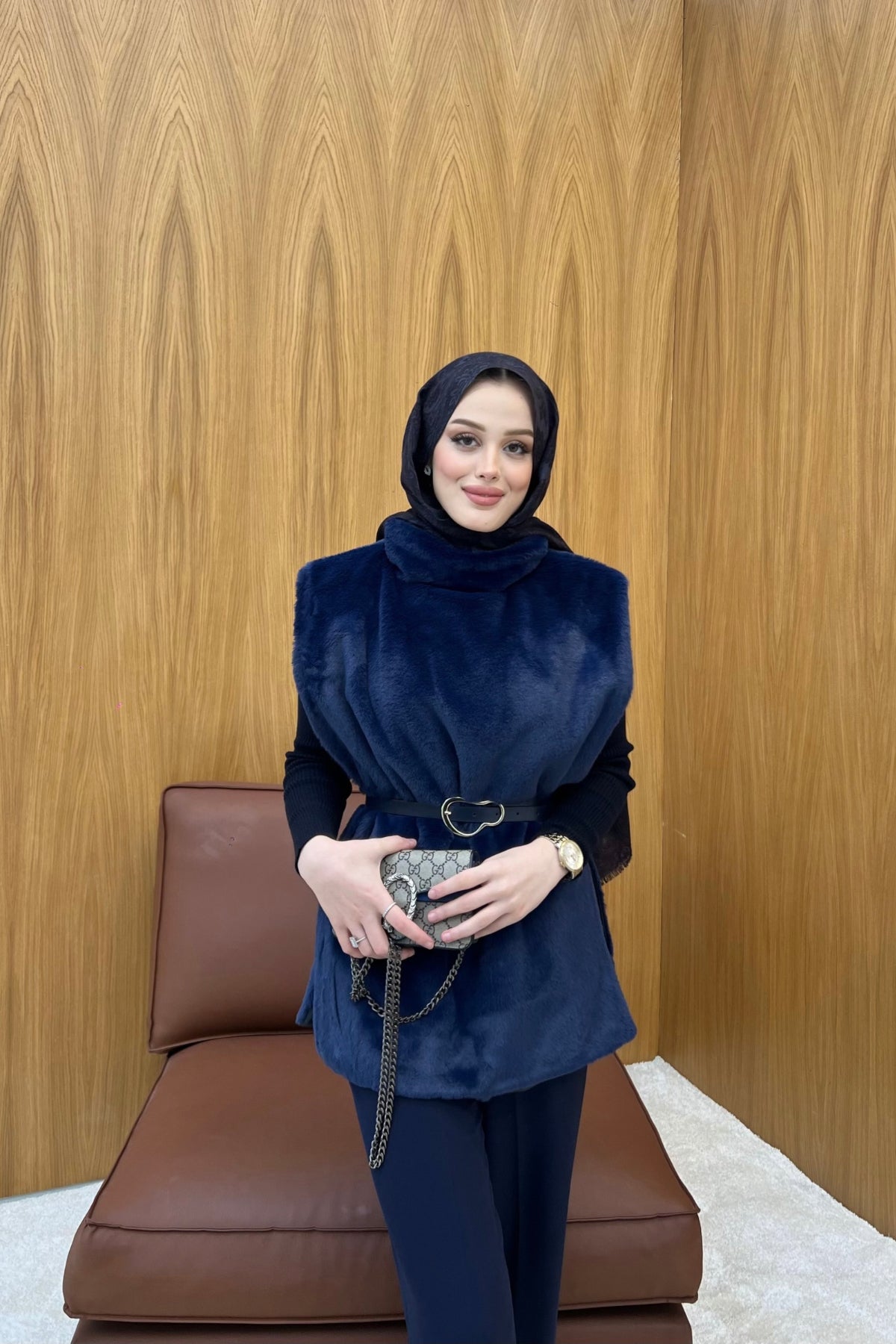 Kemer Detaylı Peluş Kürk Panço, modern çizgileri ve yumuşak dokusuyla soğuk havalarda konforlu bir şıklık sunar. Peluş kürk yapısı sayesinde sıcak tutarken, kemer detayı pançoya zarif bir form kazandırır. Rahat kalıbı sayesinde gün boyu özgür hareket imkânı sunar ve katmanlı kombinler için ideal bir parçadır. Günlük kullanımdan şehir şıklığına kadar geniş bir kullanım alanı sağlar.