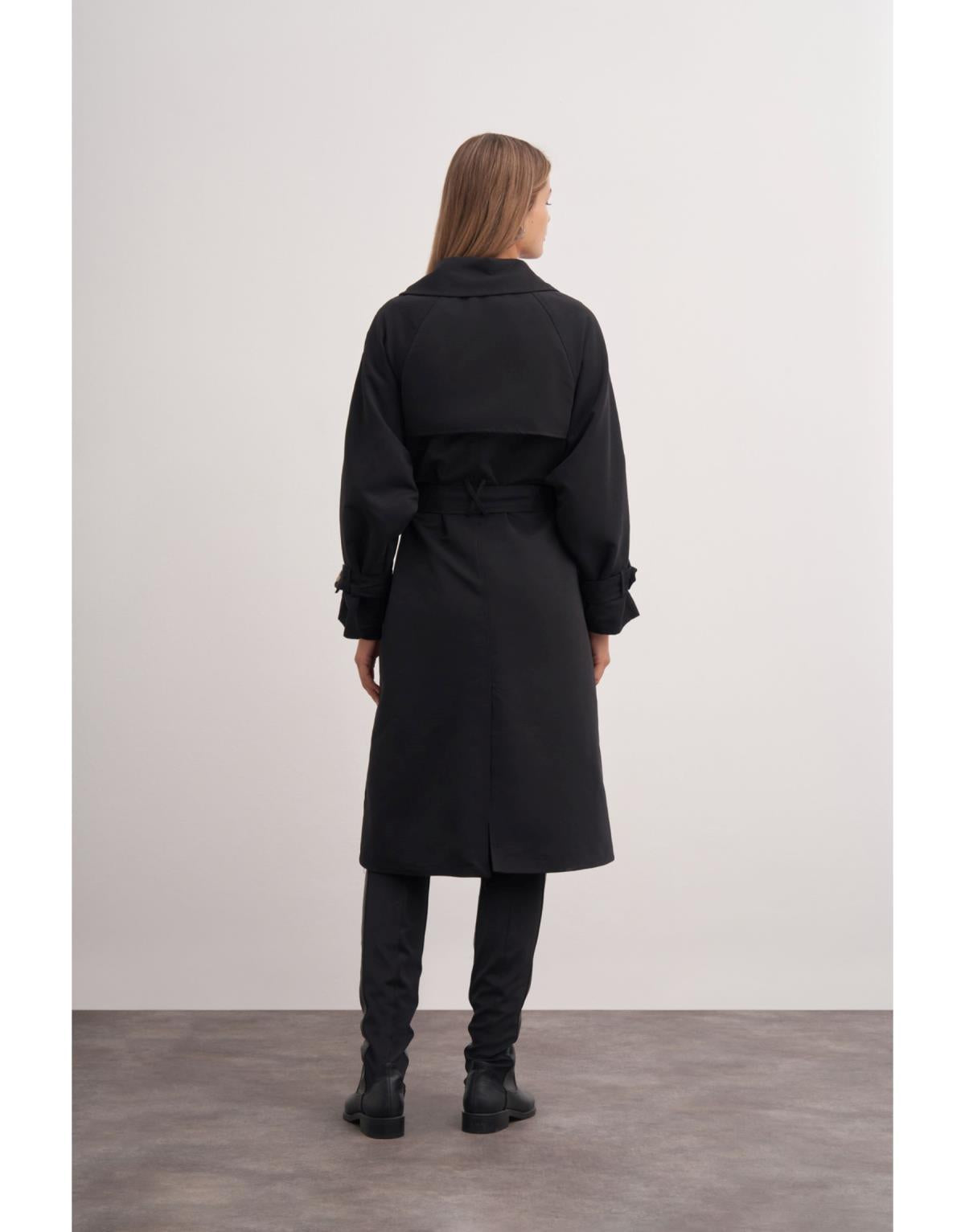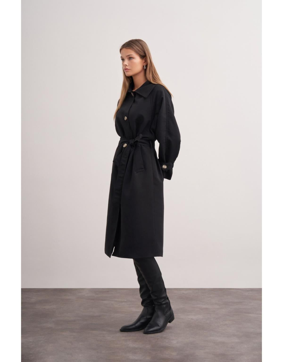 Siyah Klasik Kemerli Trençkot