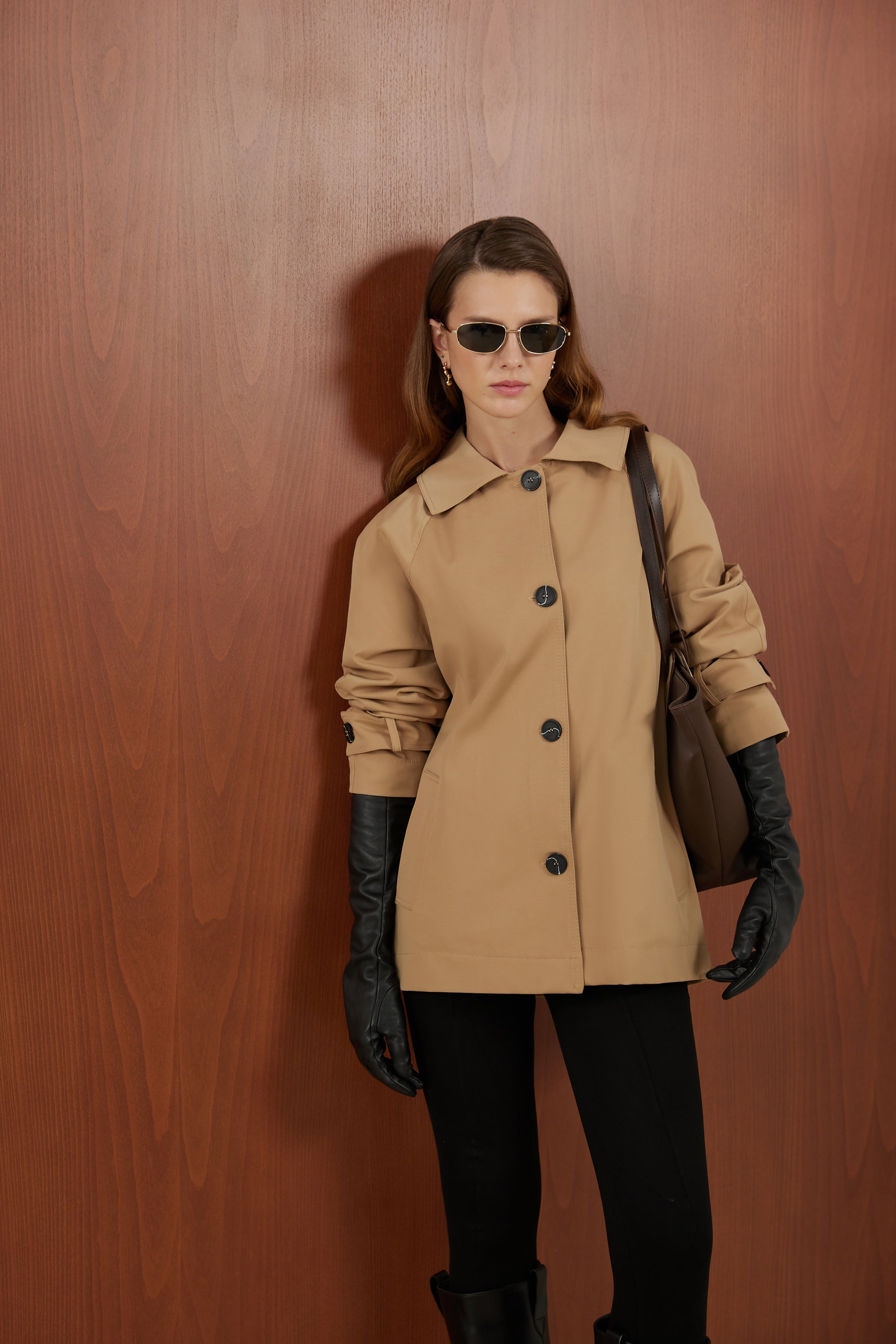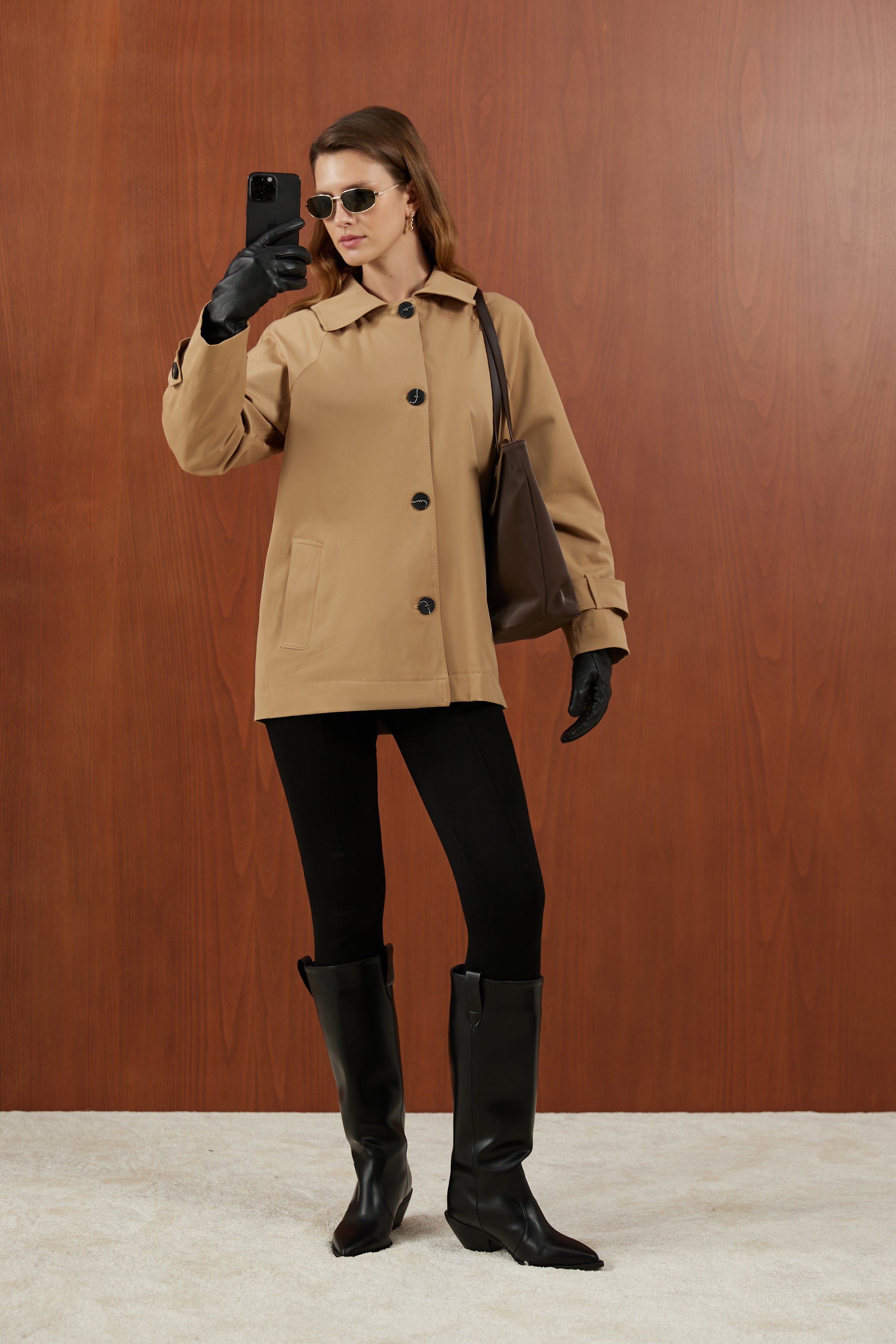 Camel Konsatras Astarlı Kısa Trenç Mont