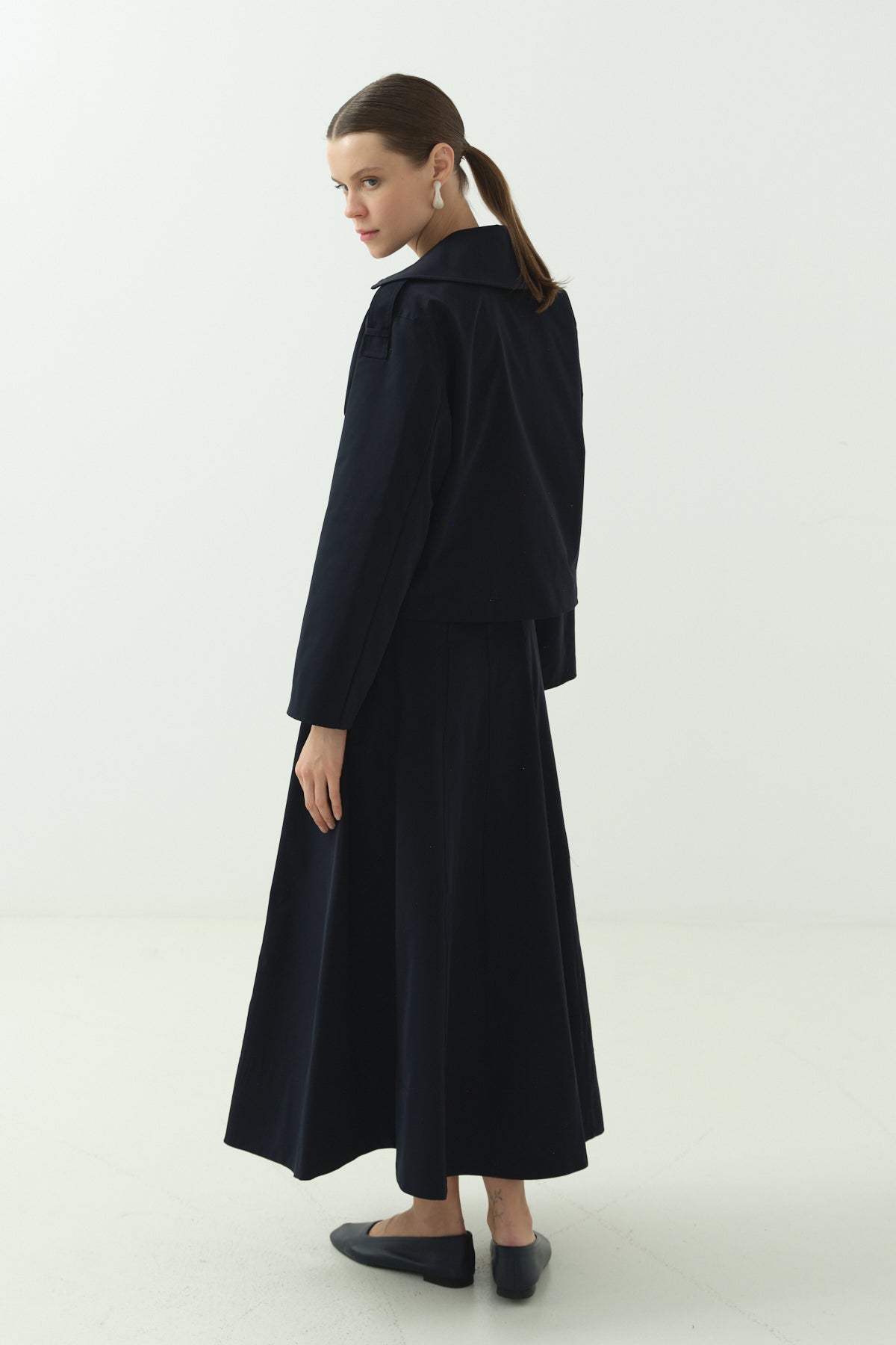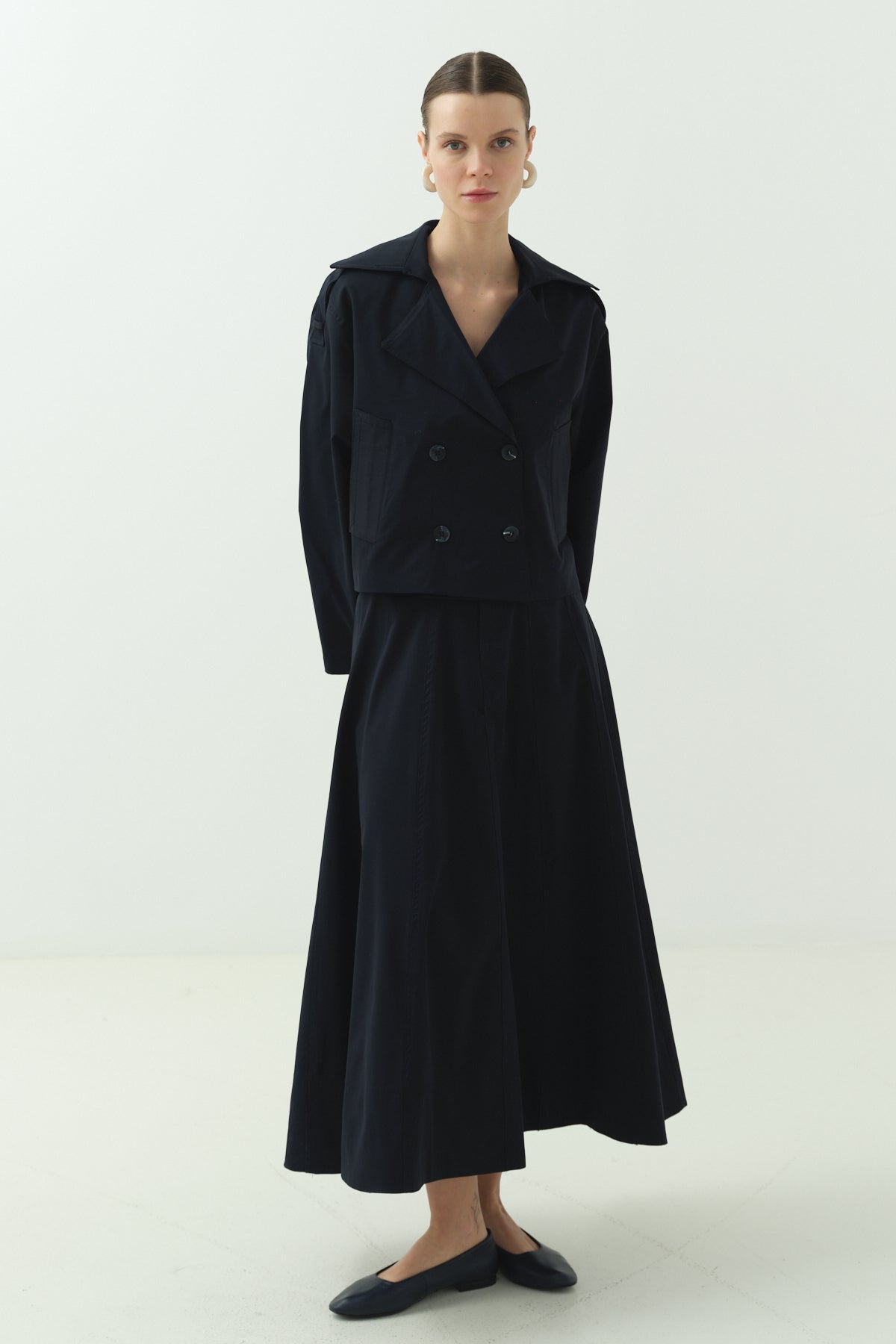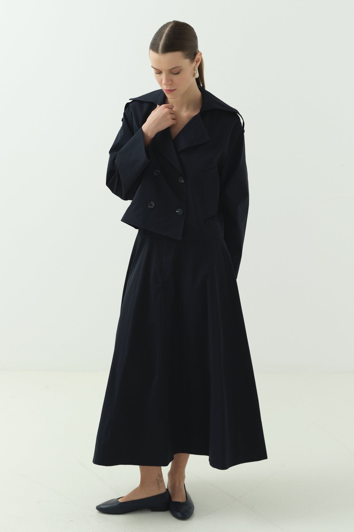 Kruvaze Yaka Kısa Trenç İkili Takım Lacivert