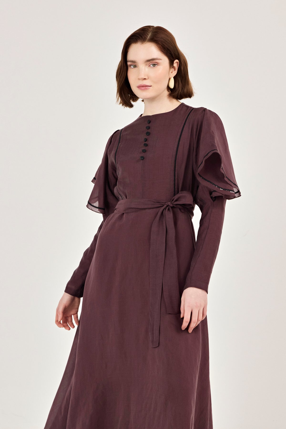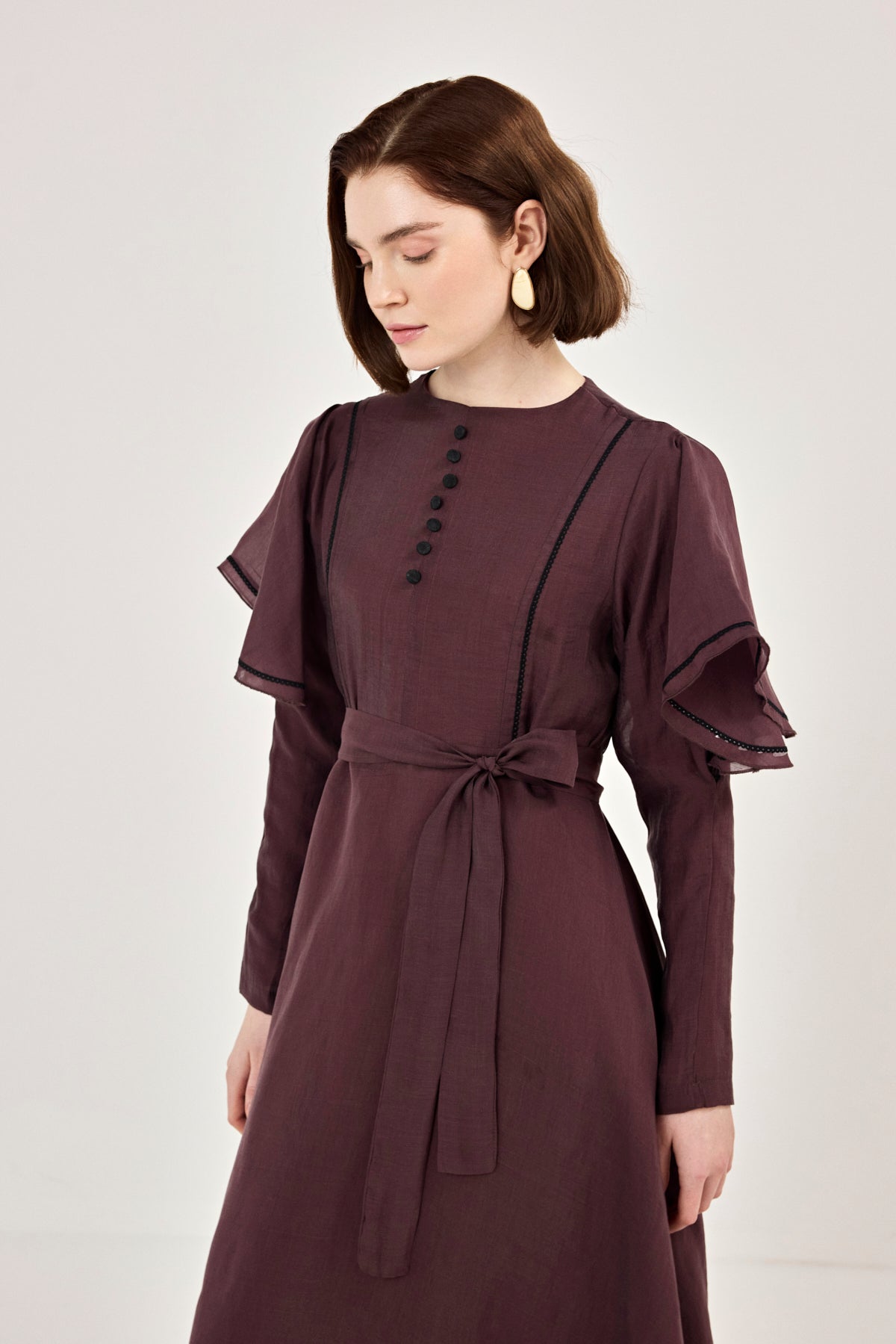 Yaka Detaylı Kuşaklı Elbise