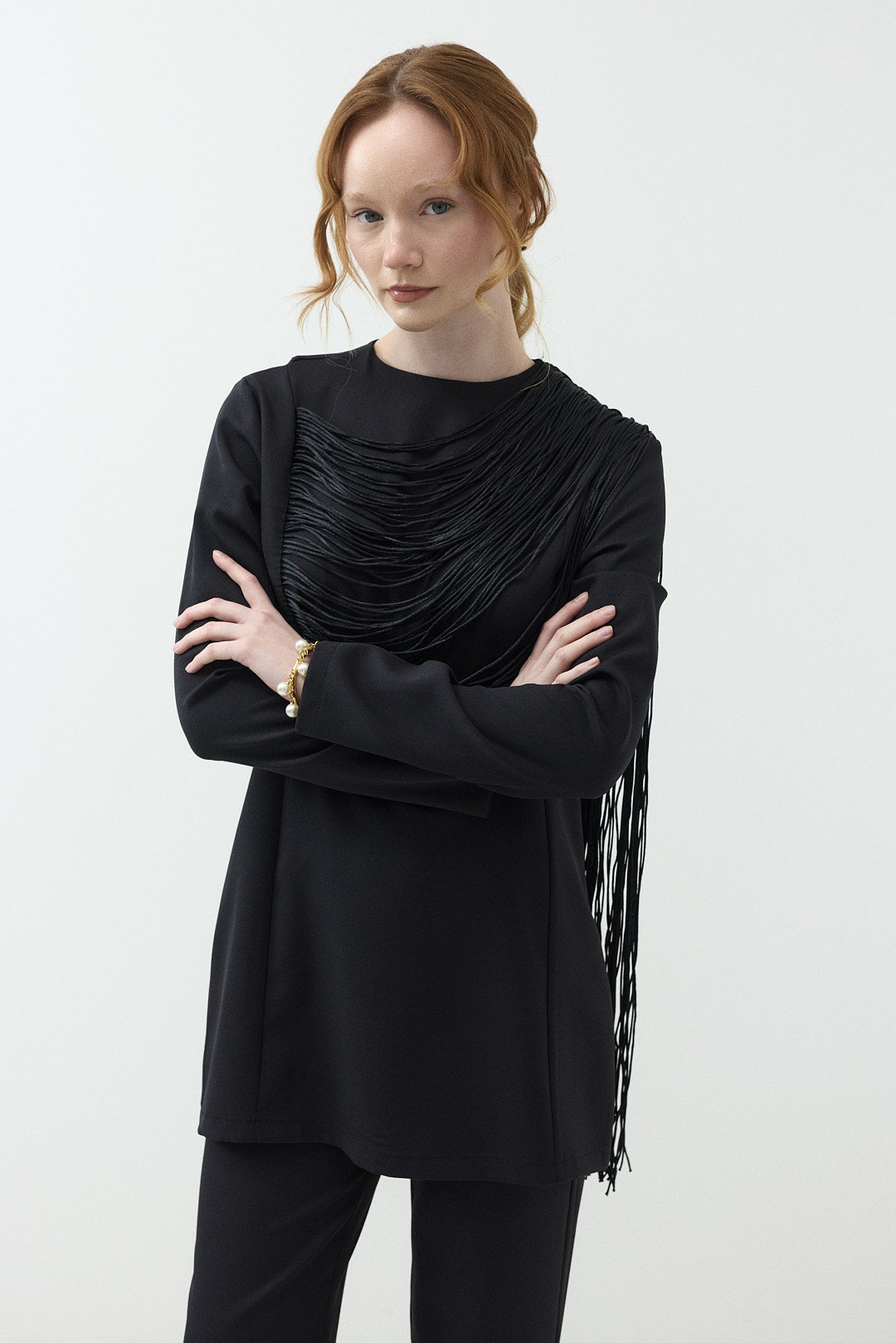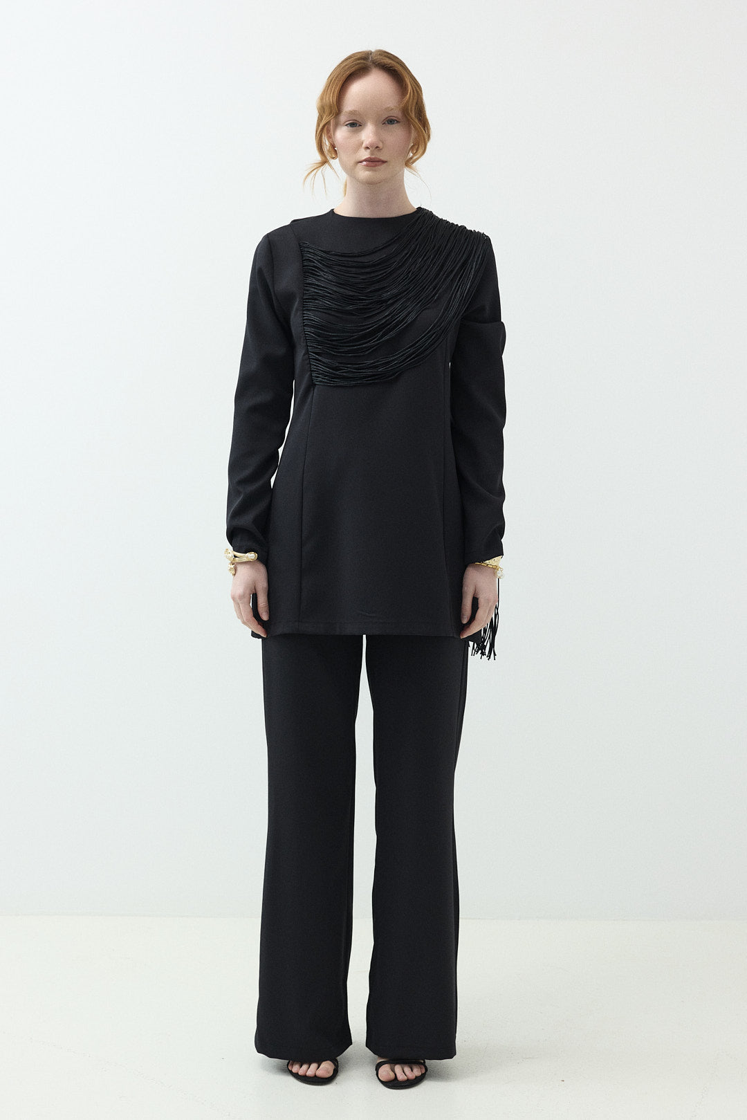Püskül İp detaylı Pantolonlu Takım Siyah