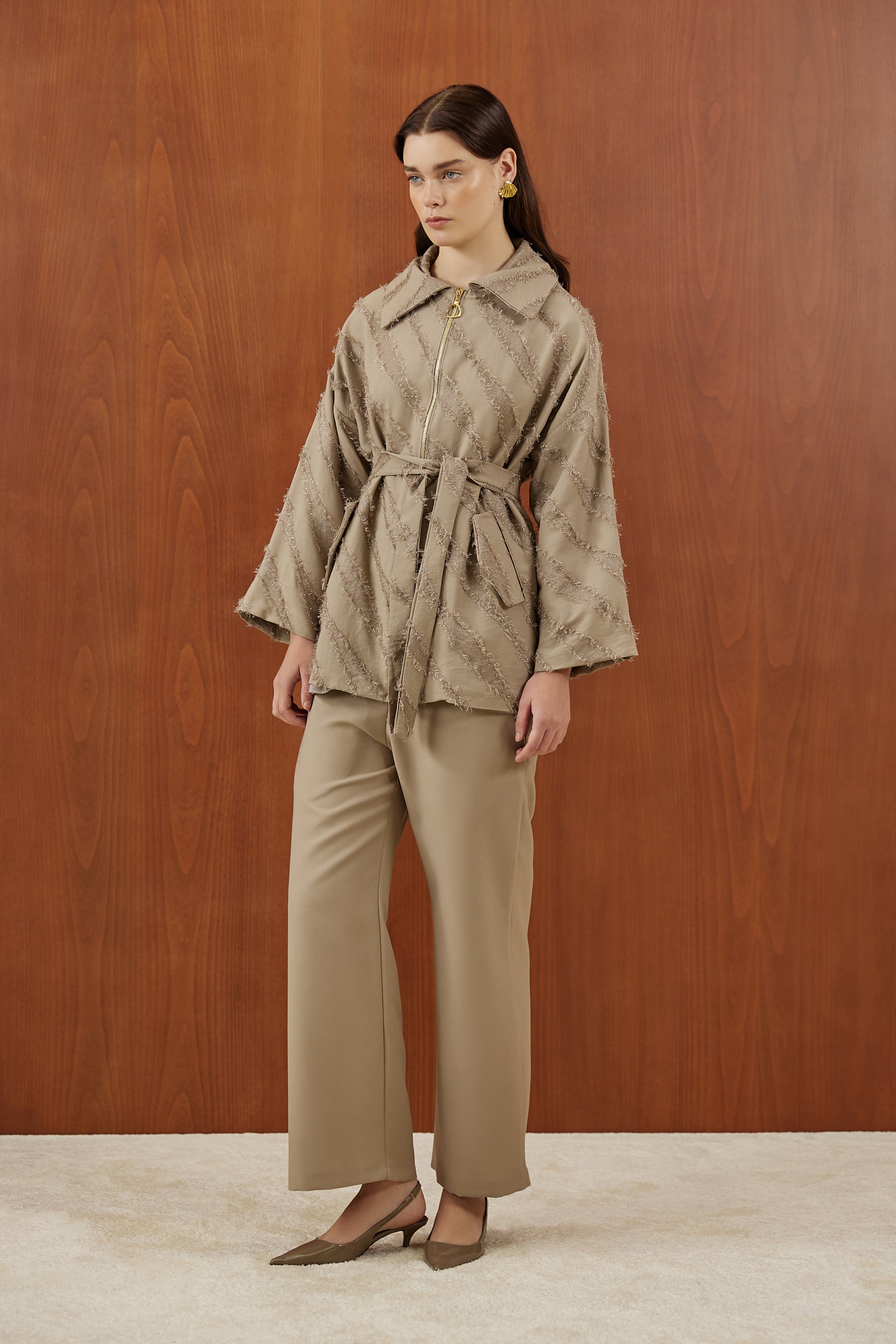 Vizon Sakallı Simli Kumaş Fermuarlı Takım