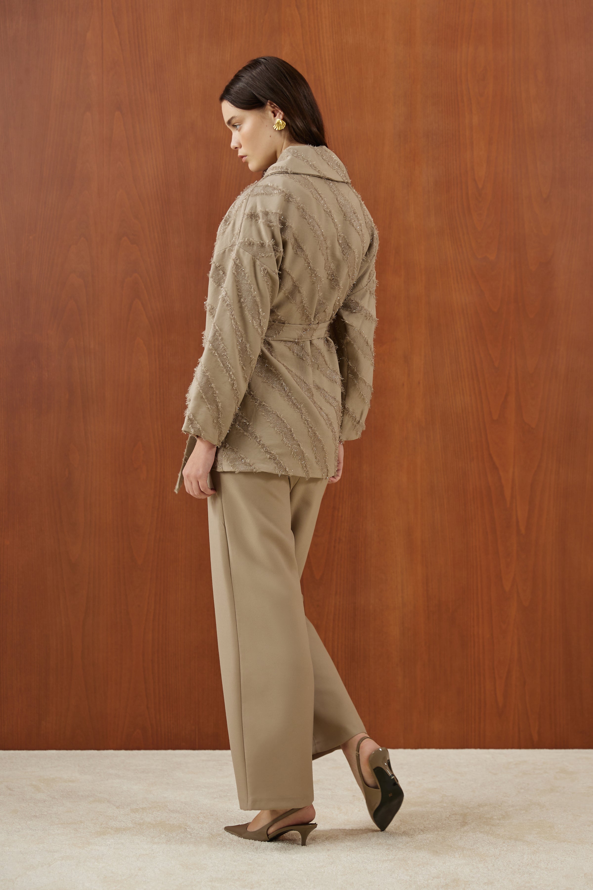 Düğmeli Güpür Detaylı İkili Takım - Bej
