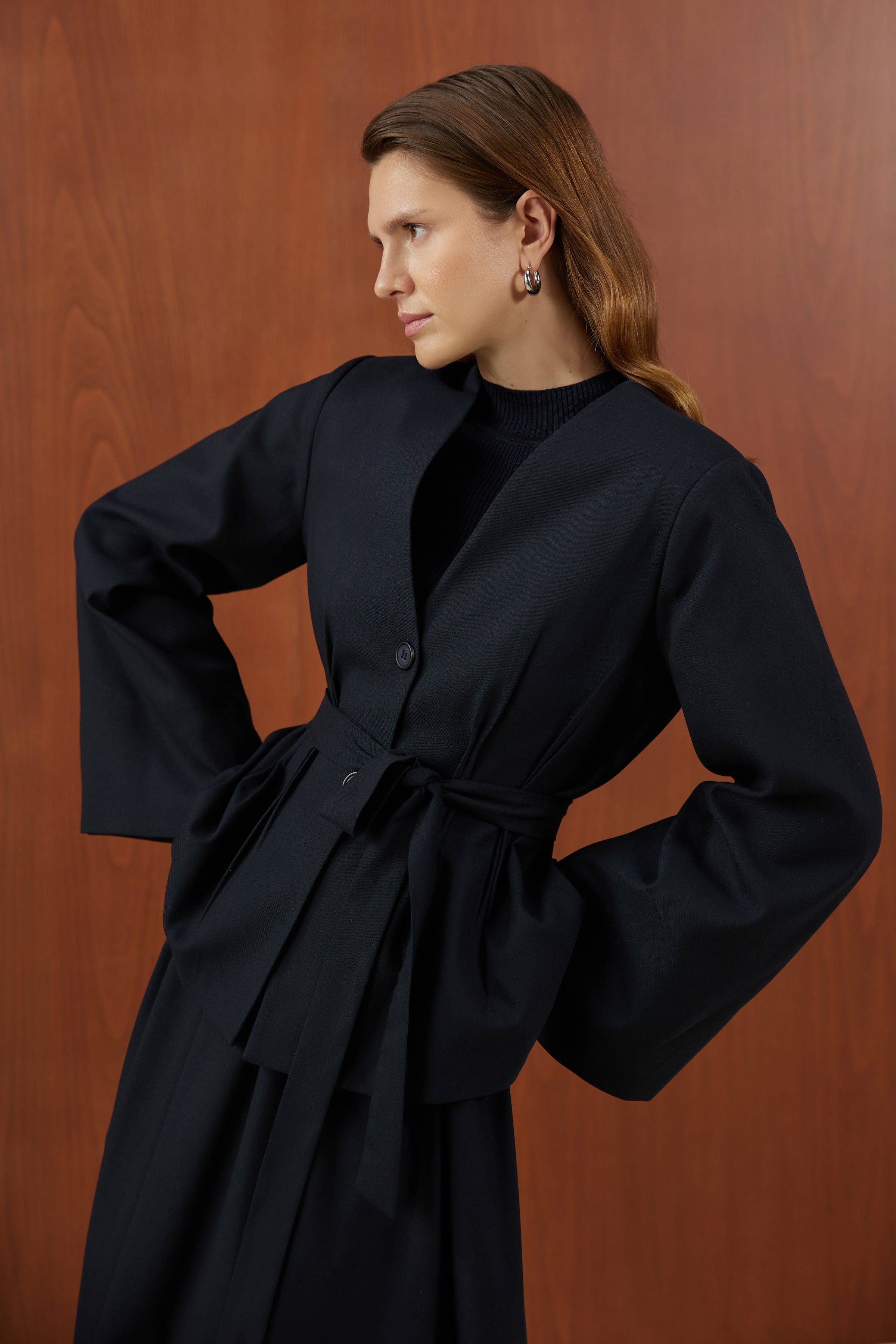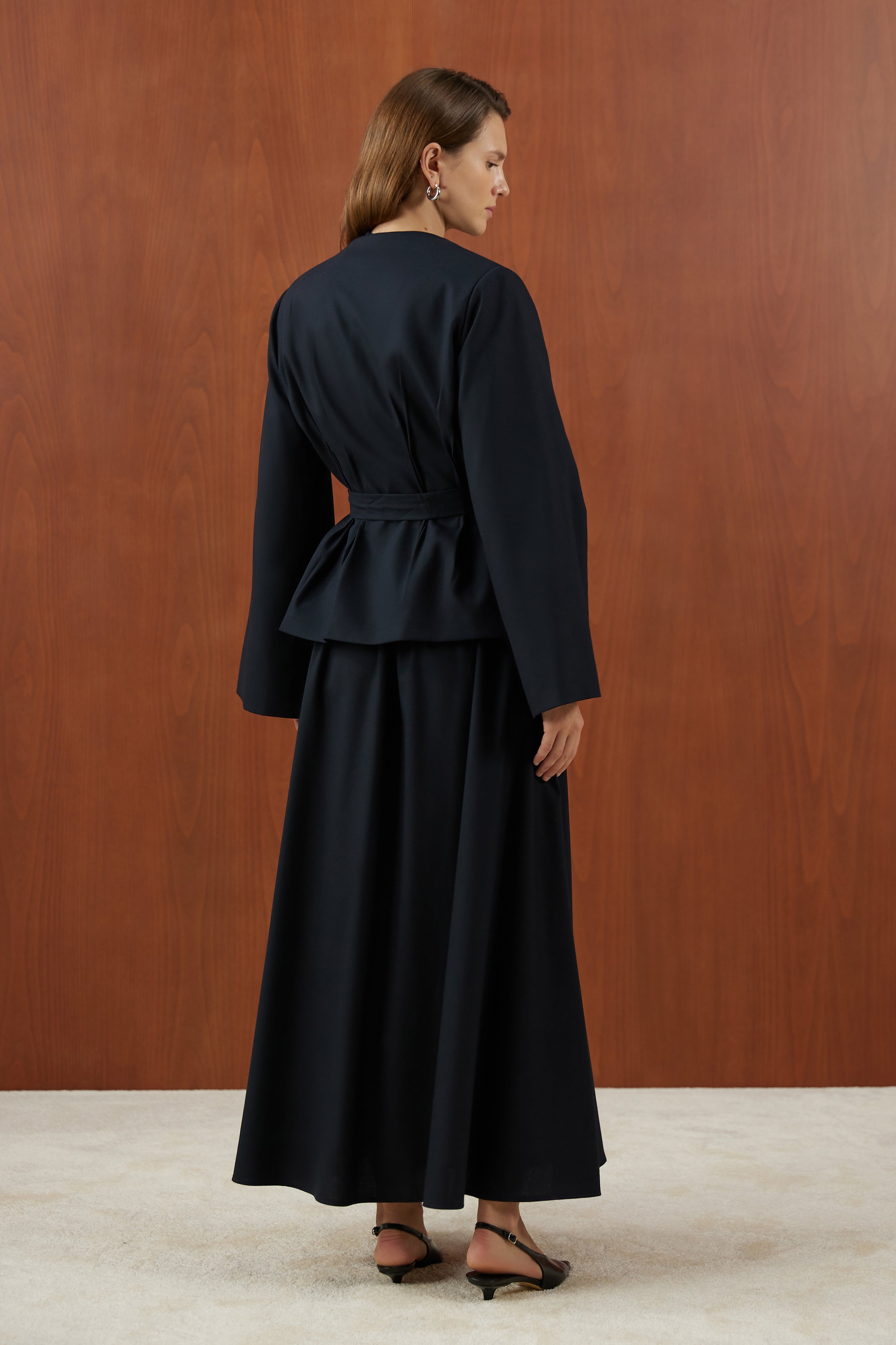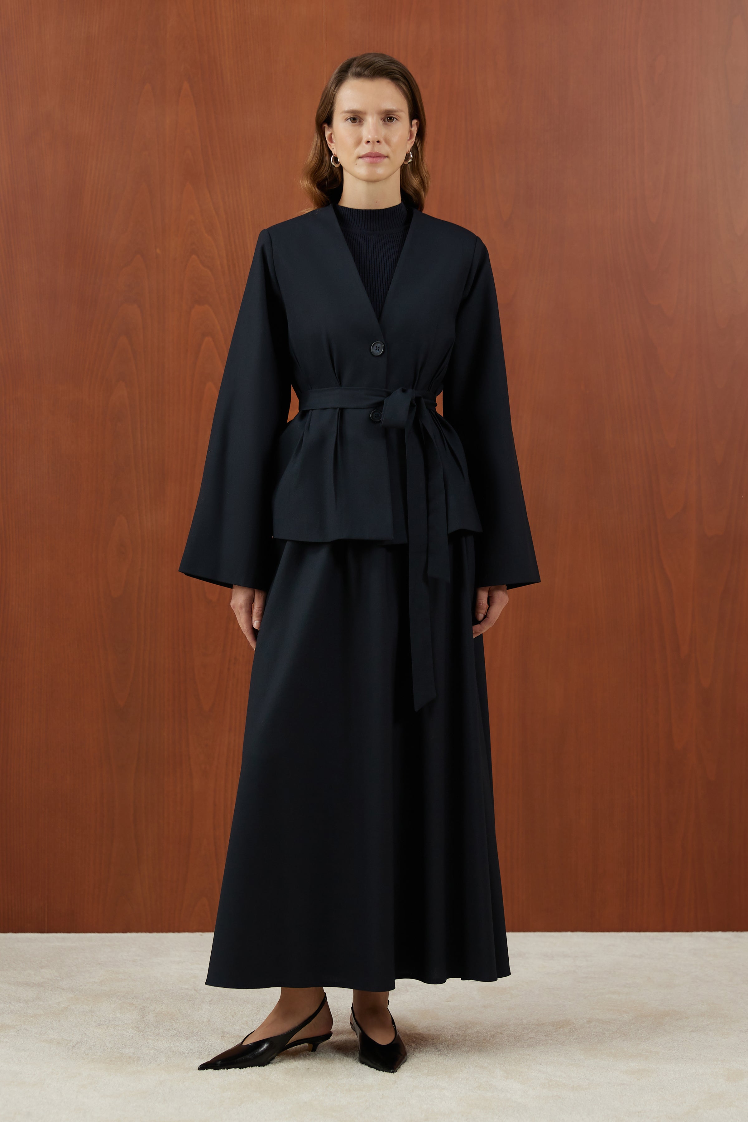 Düğmeli Güpür Detaylı İkili Takım - Bej