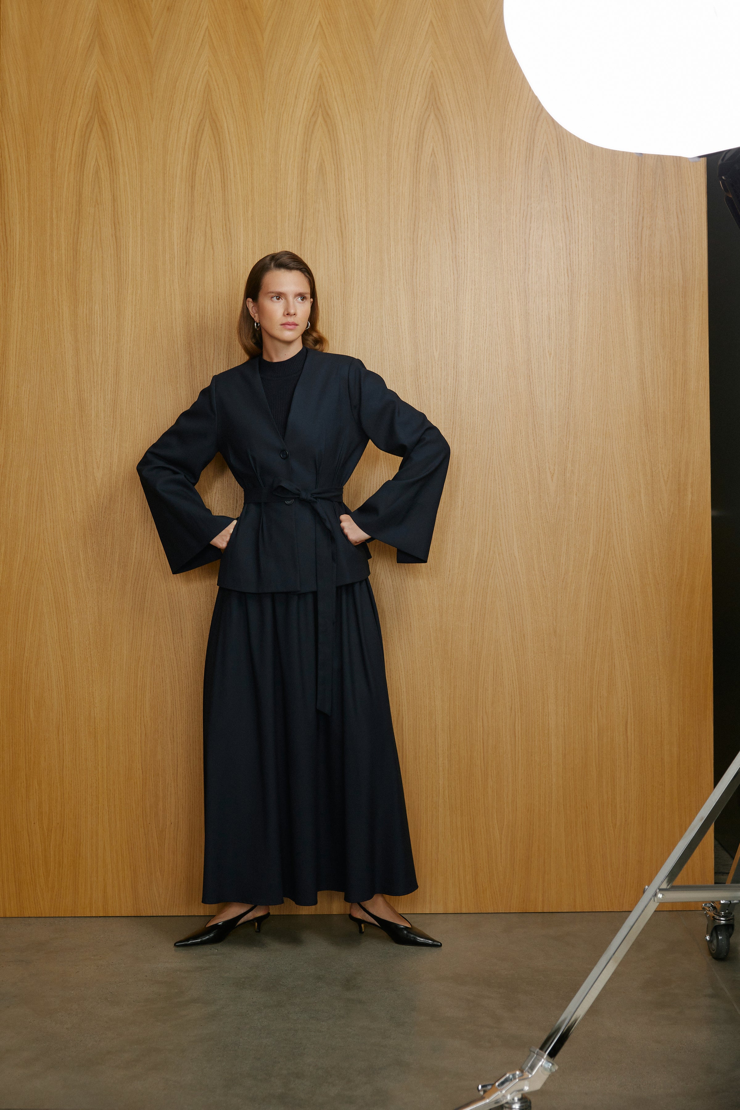 Yaka Detaylı Kuşaklı Elbise - Bej