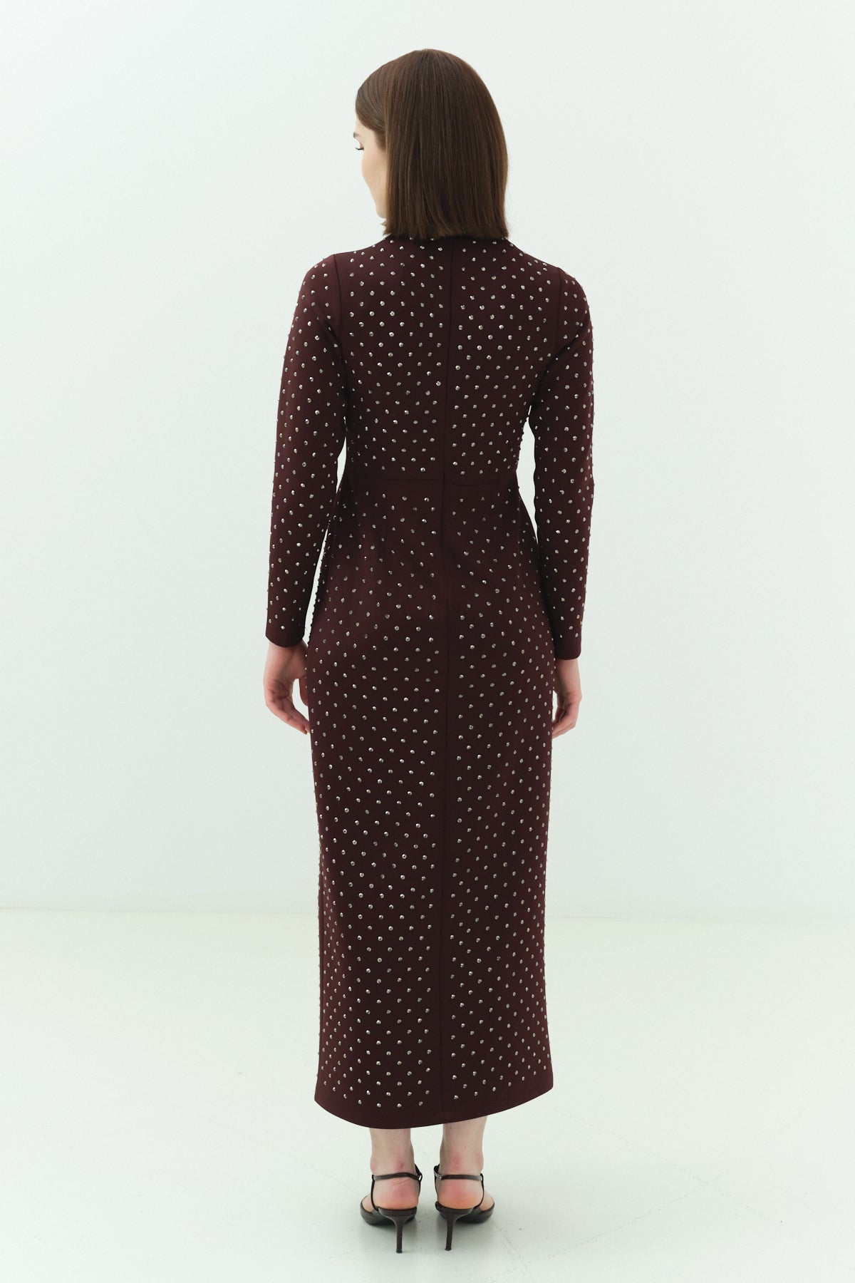 Yaka Detaylı Kuşaklı Elbise - Bej