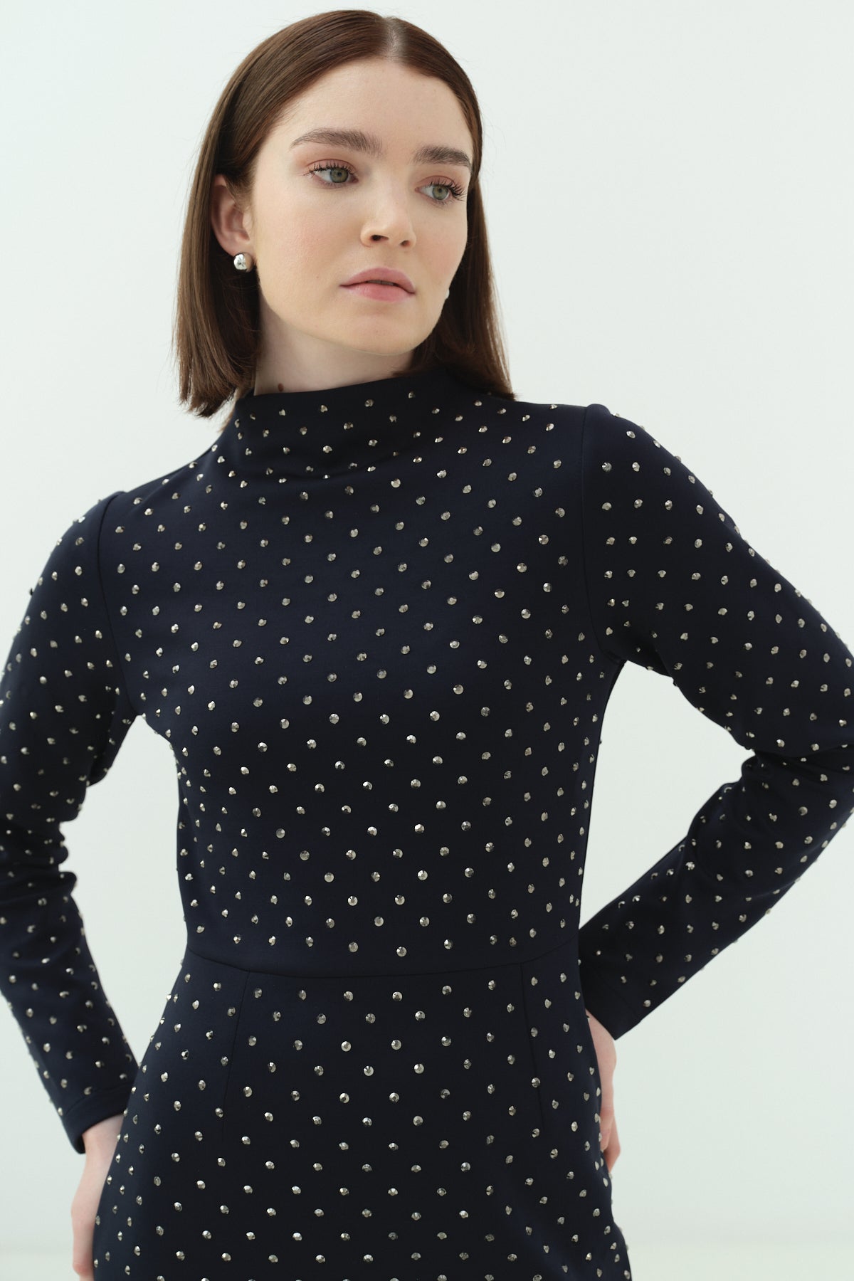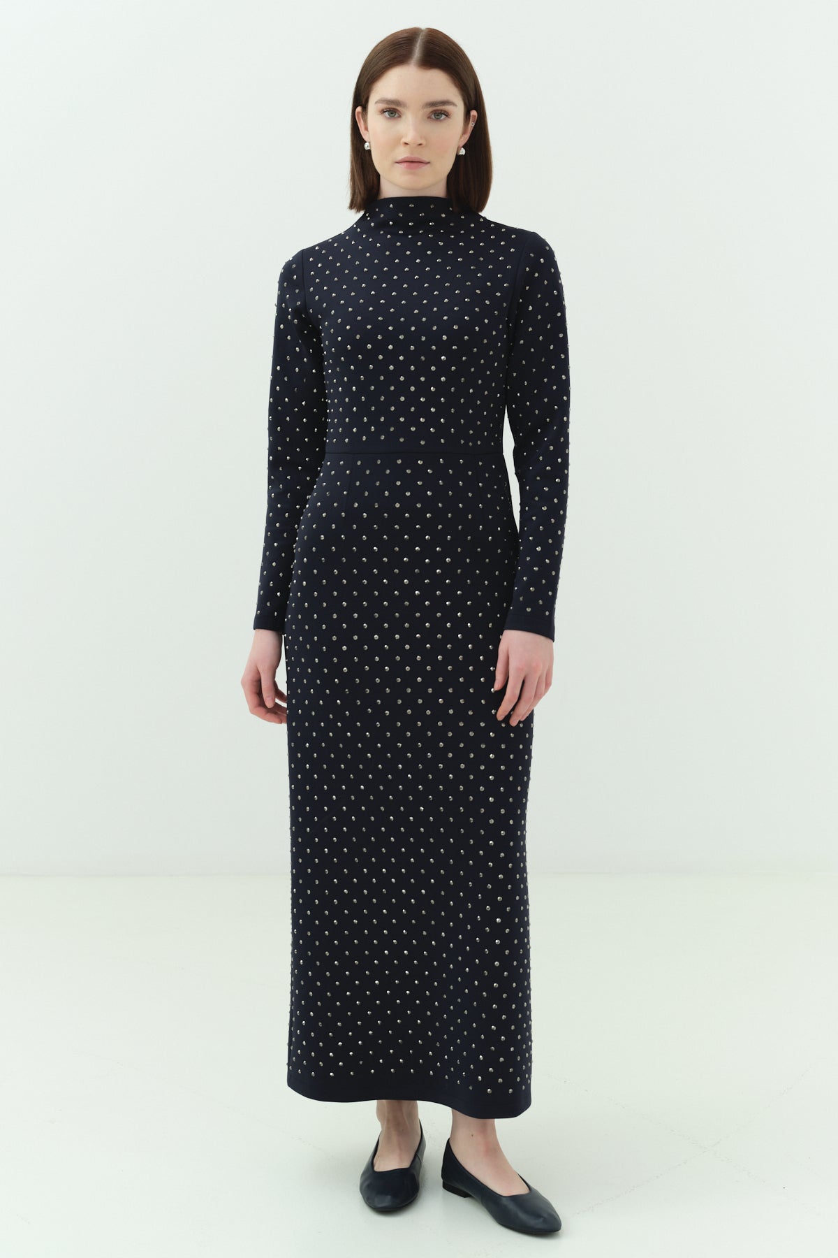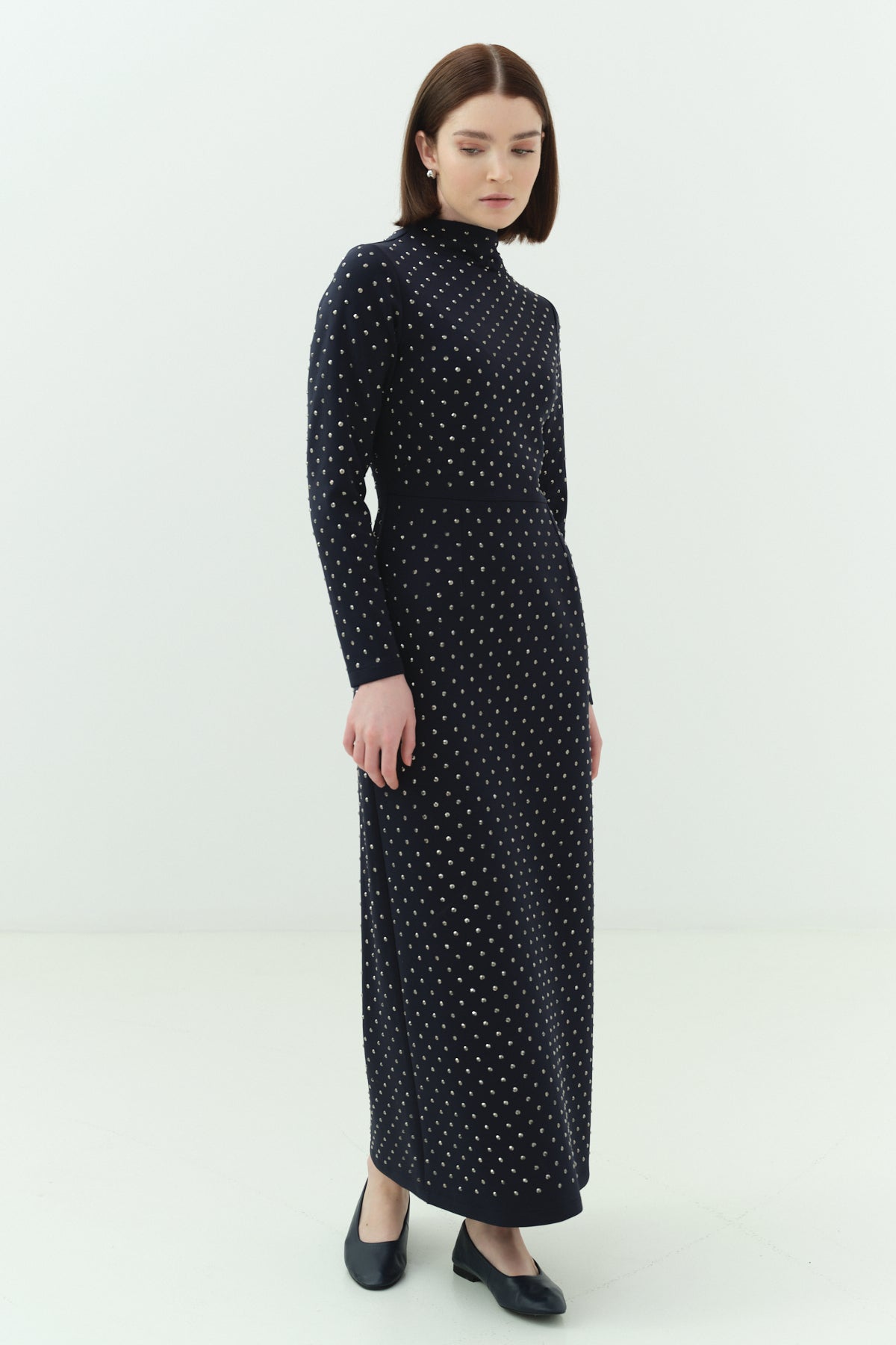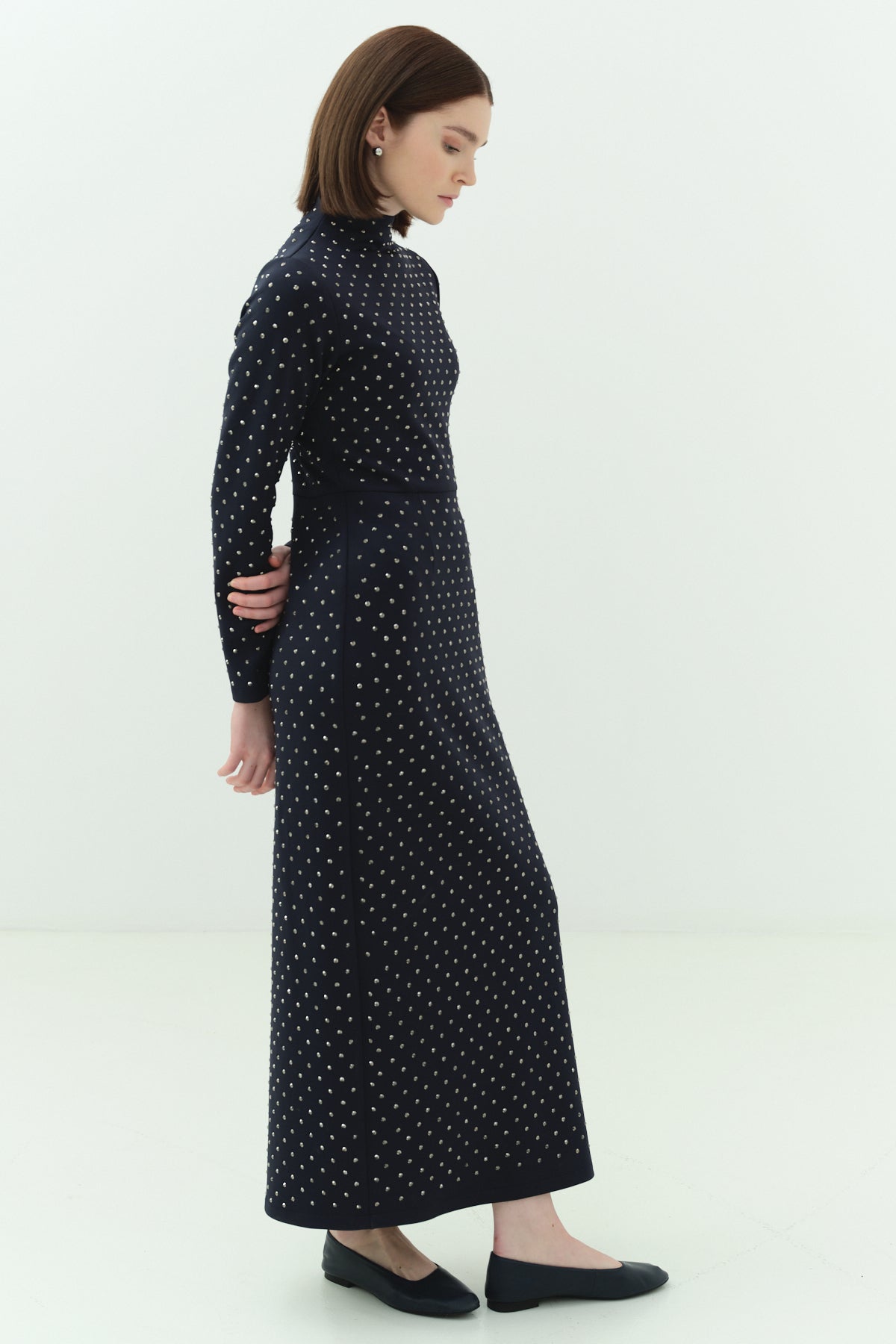 Taşlı Scuba Kalem Elbise Lacivert